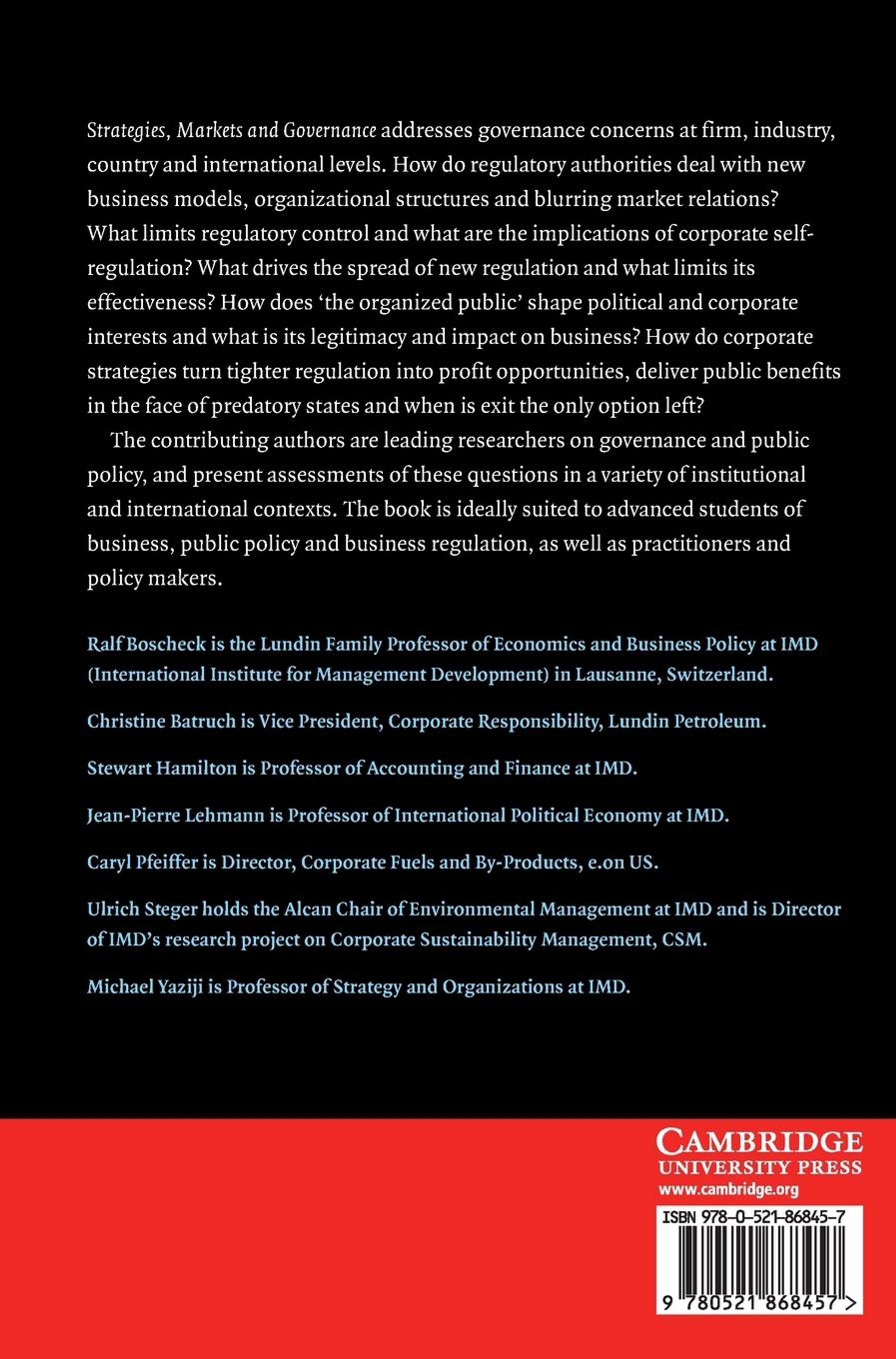 Strategies, Markets and Governance addresses governance concerns at firm, industry, country and international levels.