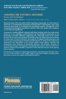 Our society's preoccupation with crime and fear of crime appears to have shifted its focus to the juvenile offender. Both electronic and print media continuously warn us that juvenile offenders are increasingly younger and more virulent. The demographics of our population suggest that there will only be more juvenile offenders to fear in the near future. All of these concerns arise in a social climate that is characterized by an ever increasing demand for stronger retributive measures against the offender. The belief that only harsh justice will protect us from the ravages of juveniles has become dominant. Increasingly, perceptions and politics, rather than scientific data, dominate policy making with regard to youthful offenders. In Assessing the Youthful Offender: Issues and Techniques, Robert D. Hoge and D. A. Andrews make a restrained, rational, and ultimately persuasive argu ment for the use of standardized psychological assessments in the effective management of youth within juvenile justice systems. They clarify how what we already know about the cause and management of youthful criminal activity can be incorporated into standardized testing and that the information obtained from testing can improve the administration of criminal justice. Moreover, this informa tion is useful whatever the theoretical biases of those who administer the justice system. The efficiency of policies of either retribution, deterrence, or rehabilitation is only enhanced by reliance on data.