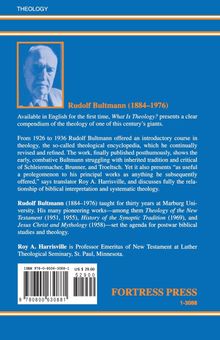 From 1926 to 1936 Rudolf Bultmann offered an introductory course in theology, which he continually revised and refined. Finally published posthumously, and now available in English for the first time, WHAT IS THEOLOGY? presents a clear compendium of the theology of a member of one of this century's rare number of giant scholars.