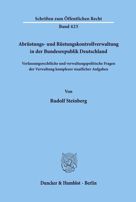 Rudolf Steinberg: Abrüstungs- und Rüstungskontrollverwaltung in der Bundesrepublik Deutschland., Kartoniert / Broschiert