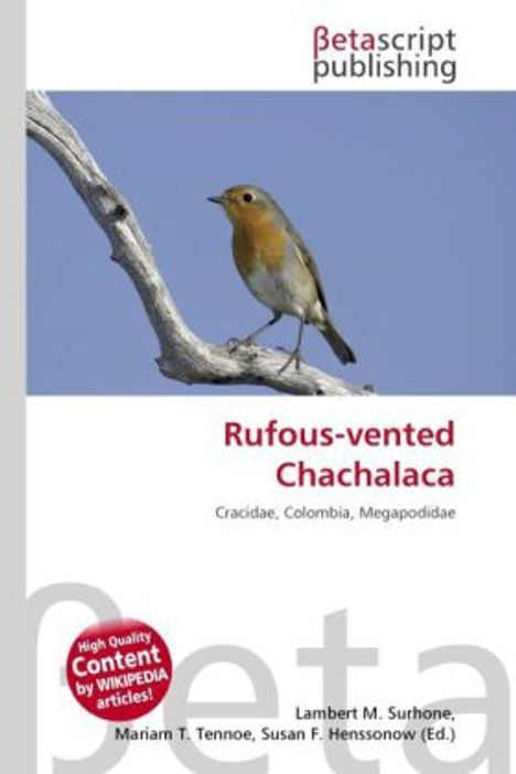 Please note that the content of this book primarily consists of articles available from Wikipedia or other free sources online. The Rufous-vented Chachalaca, Ortalis ruficauda, is a member of an ancient group of birds of the Cracidae family, which are related to the Australasian mound builders. It inhabits northeast Colombia and northern Venezuela where it is called Guacharaca, and in Tobago where it is known as the Cocrico. It is also found on Bequia and Union Island in the Grenadines where it may have been introduced. Rufous-vented Chachalaca is a largely arboreal species found in forest and woodland, but it is also found in more open dry scrubby areas. This combined with relatively low hunting pressure, make it far less vulnerable than larger members of the family, notably curassows. These are medium-sized birds, similar in general appearance to turkeys, with small heads, long strong legs and a long broad tail. They are typically 53-58cm long; the female weighs 540g and the larger male 640g. They have fairly dull plumage, dark brown above and paler below. The head is grey, and the brown tail is tipped rufous or white depending on race.