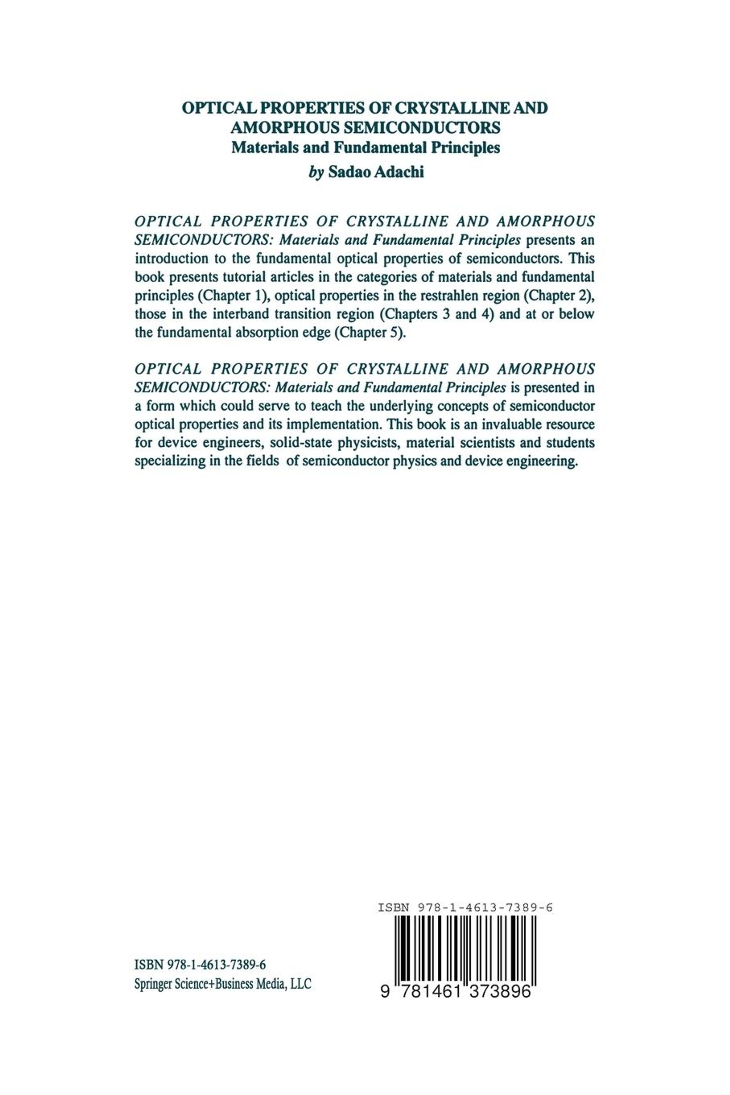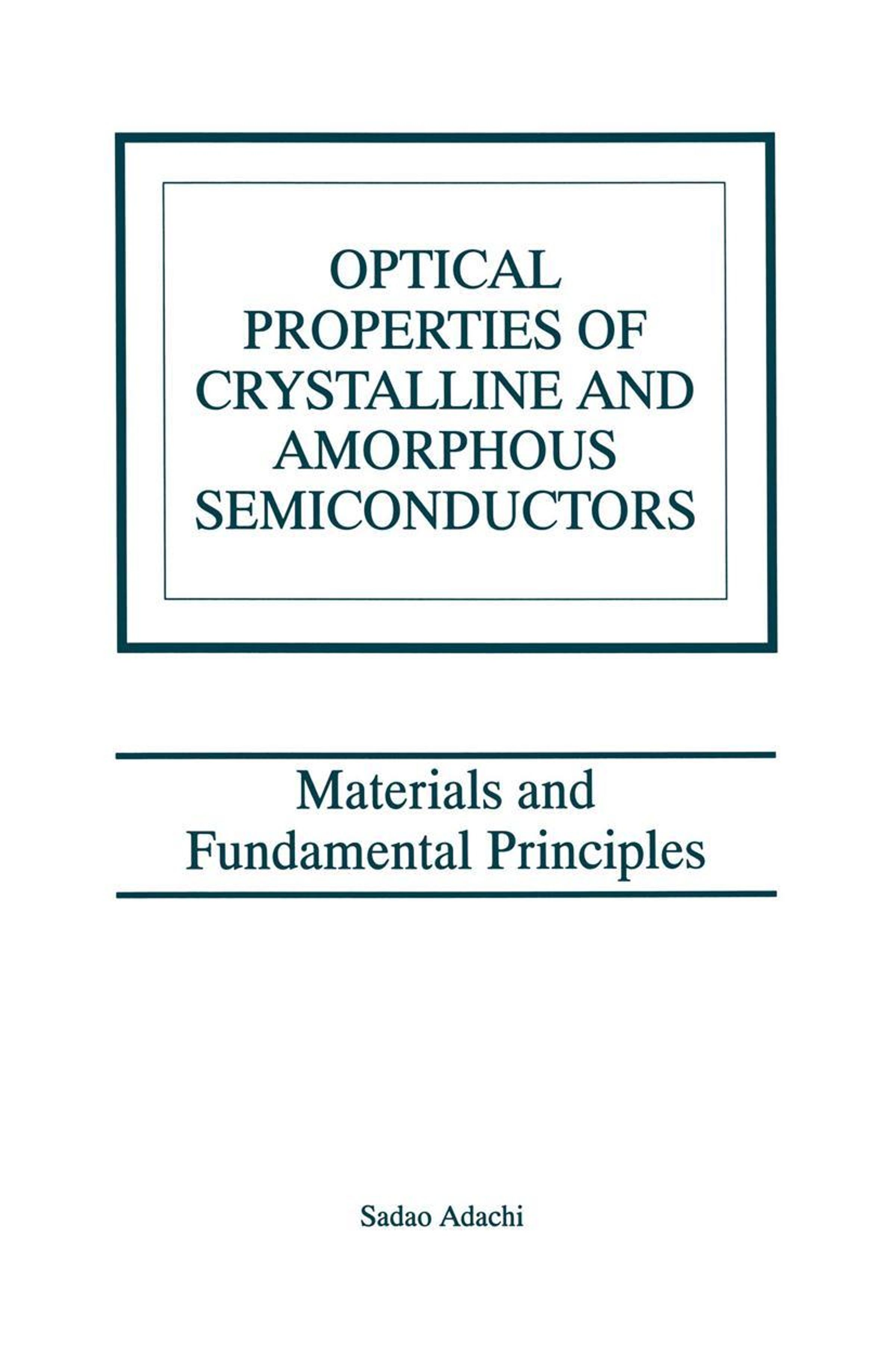 Sadao Adachi: Optical Properties of Crystalline and Amorphous Semiconductors, Buch, Buch