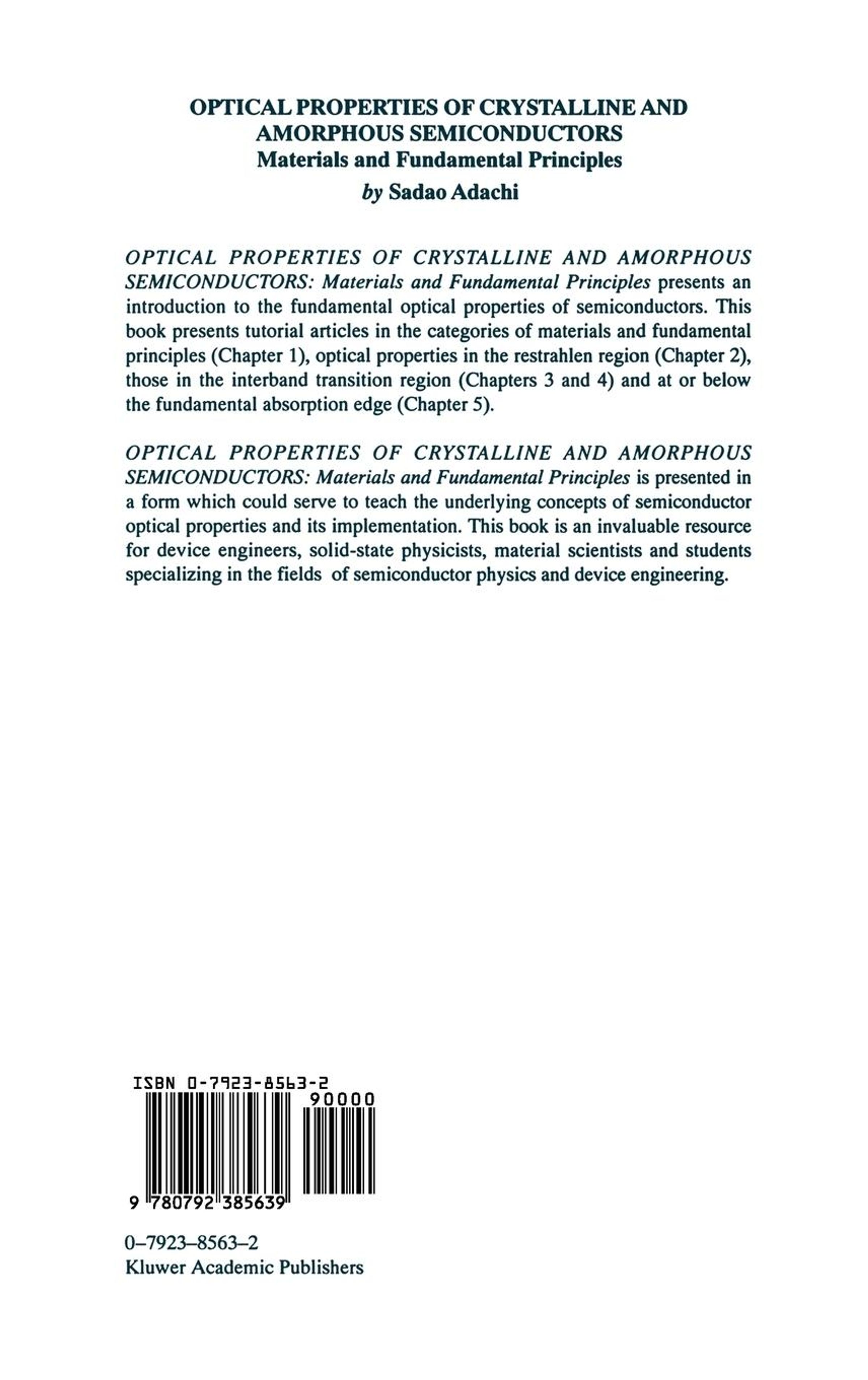 Sadao Adachi: Optical Properties of Crystalline and Amorphous Semiconductors, Gebunden