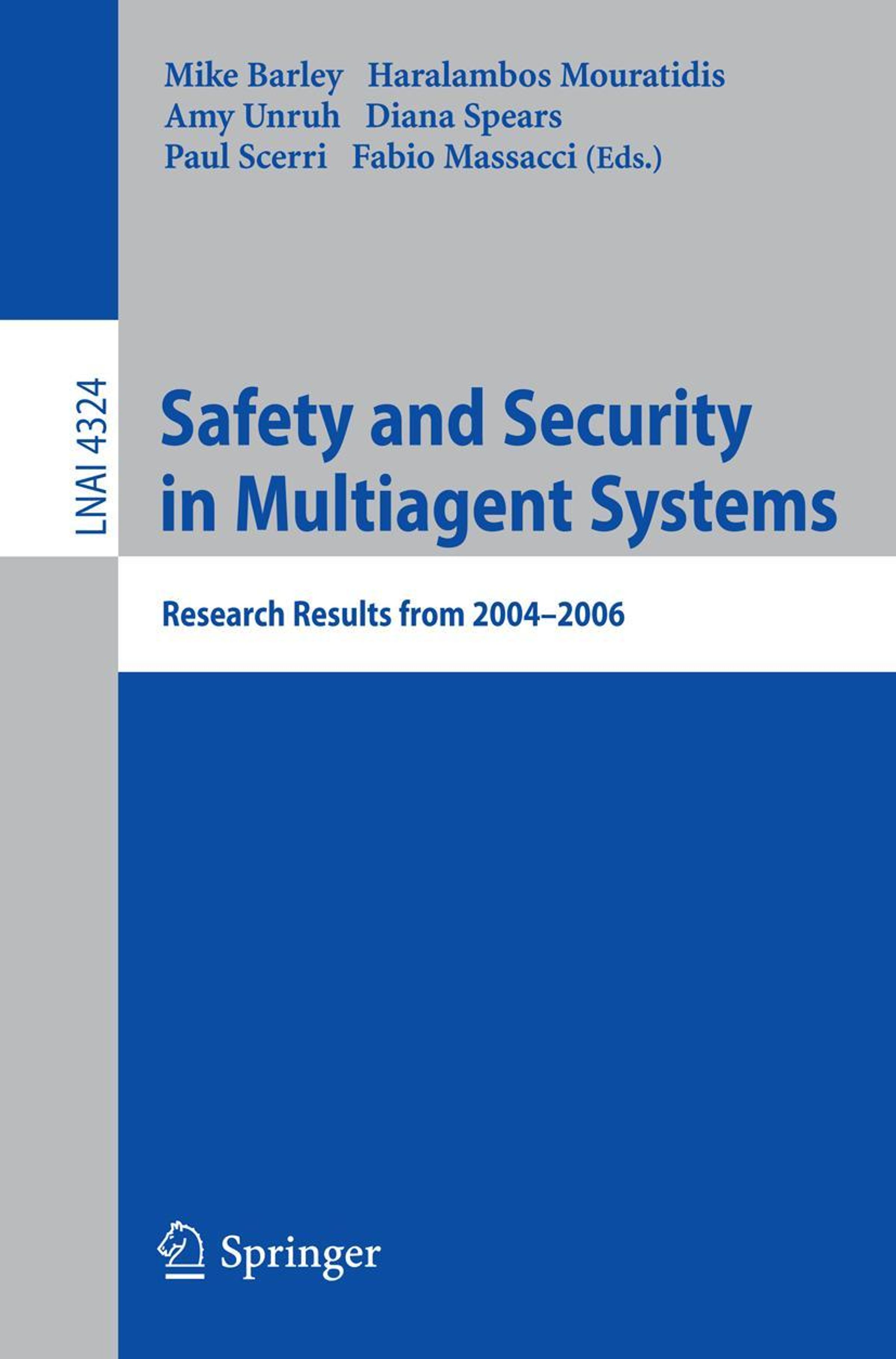 As intelligent autonomous agents and multiagent system applications become more pervasive, it becomes increasingly important to understand the risks associated with using these systems. Incorrect or inappropriate agent behavior can have harmful - fects, including financial cost, loss of data, and injury to humans or systems. For - ample, NASA has proposed missions where multiagent systems, working in space or on other planets, will need to do their own reasoning about safety issues that concern not only themselves but also that of their mission. Likewise, industry is interested in agent systems that can search for new supply opportunities and engage in (semi-) automated negotiations over new supply contracts. These systems should be able to securely negotiate such arrangements and decide which credentials can be requested and which credentials may be disclosed. Such systems may encounter environments that are only partially understood and where they must learn for themselves which aspects of their environment are safe and which are dangerous. Thus, security and safety are two central issues when developing and deploying such systems. We refer to a multiagent system¿s security as the ability of the system to deal with threats that are intentionally caused by other intelligent agents and / or s- tems, and the system¿s safety as its ability to deal with any other threats to its goals.
