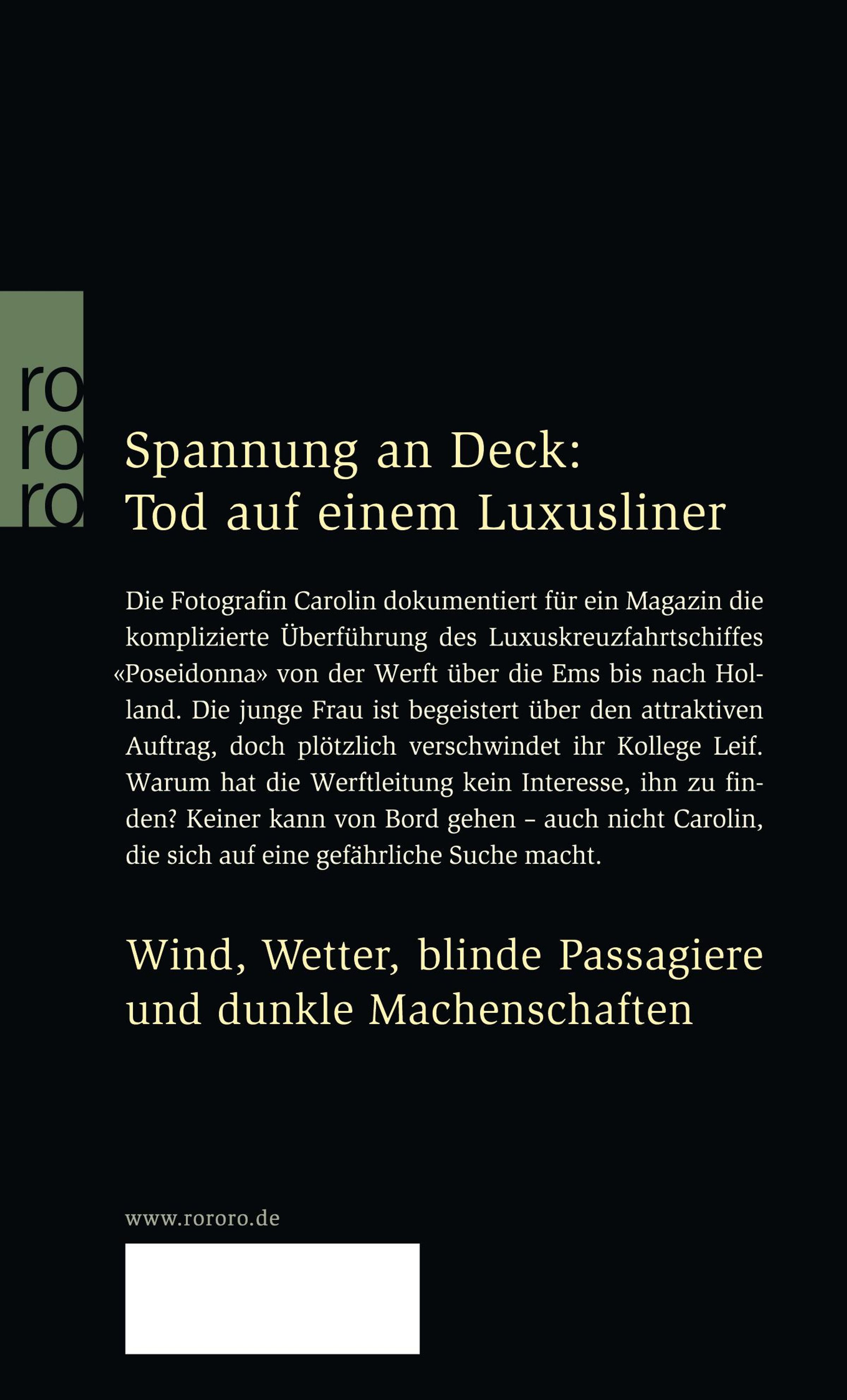 Die Fotografin Carolin dokumentiert für ein Magazin die komplizierte Überführung des Luxuskreuzfahrtschiffes Poseidonna von der Werft über die Ems bis nach Holland. Die junge Frau ist begeistert über den attraktiven Auftrag, doch plötzlich verschwindet ihr Kollege Leif. Warum hat die Werftleitung kein Interesse, ihn zu finden? Keiner kann von Bord gehen - auch nicht Carolin, die sich auf eine gefährliche Suche macht.