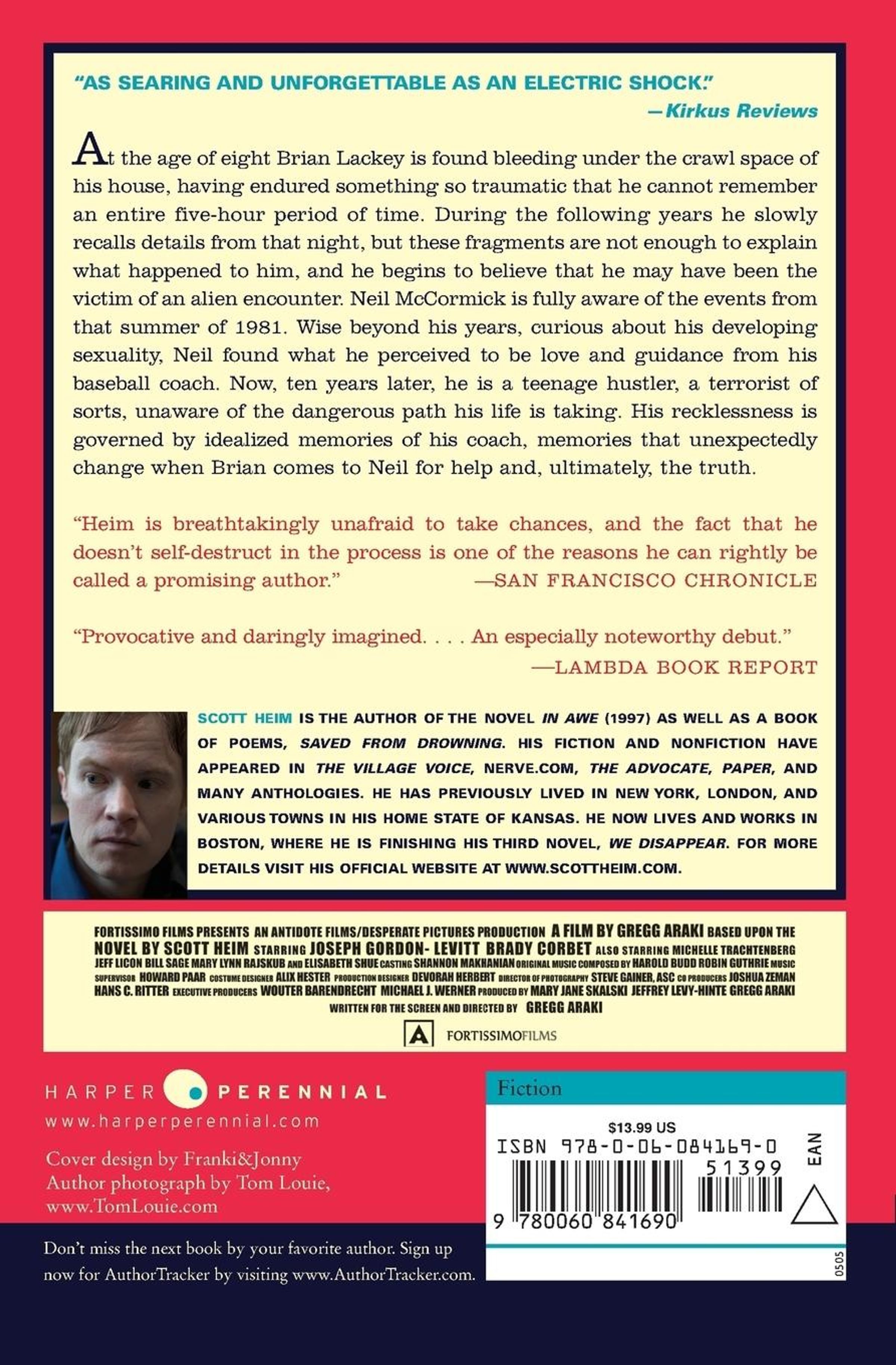 "Wrenching . . . powerfully sensuous." -- New York Times "As searing and unforgettable as an electric shock." --Kirkus Reviews At the age of eight Brian Lackey is found bleeding under the crawl space of his house, having endured something so traumatic that he cannot remember an entire five-hour period of time. During the following years he slowly recalls details from that night, but these fragments are not enough to explain what happened to him, and he begins to believe that he may have been the victim of an alien encounter. Neil McCormick is fully aware of the events from that summer of 1981. Wise beyond his years, curious about his developing sexuality, Neil found what he perceived to be love and guidance from his baseball coach. Now, ten years later, he is a teenage hustler, unaware of the dangerous path his life is taking. His recklessness is governed by idealized memories of his coach, memories that unexpectedly change when Brian comes to Neil for help and, ultimately, the truth.