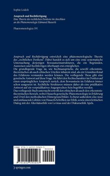 Anspruch und Rechtfertigung (Appeal and Justification ) develops a phenomenological theory of judgments on legitimacy. It undertakes a first systematic investigation of the structures in consciousness which enable the process of justification to unfold.