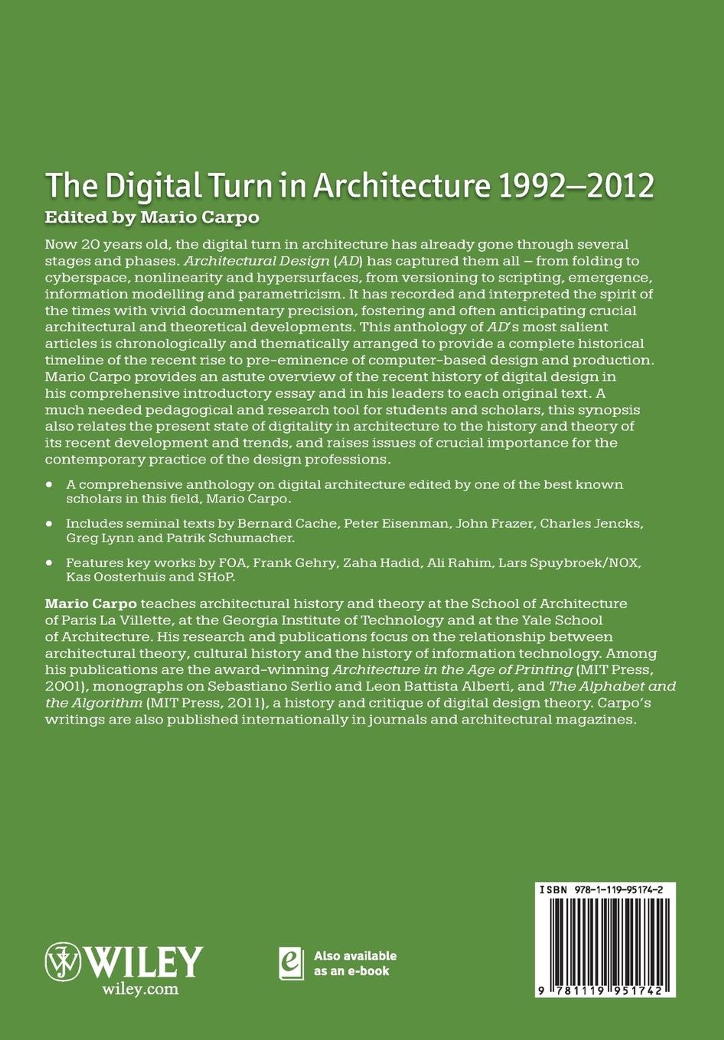- A comprehensive anthology on digital architecture edited by one of its most eminent scholars in this field, Mario Carpo.