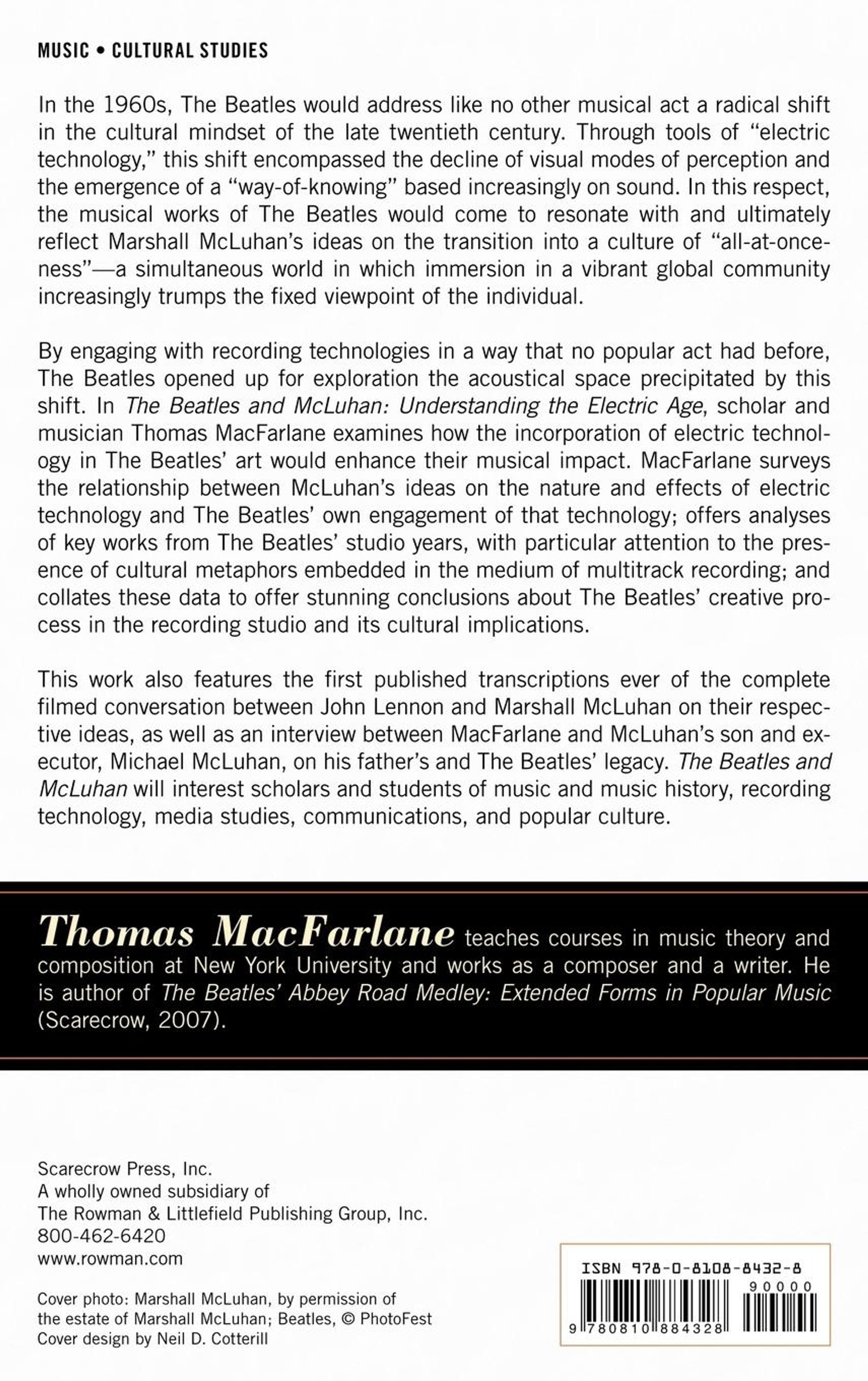 The Beatles and McLuhan: Understanding the Electric Age examines how the incorporation of electric technology in The Beatles' art would enhance their musical impact. MacFarlane surveys the relationship between McLuhan's ideas on the nature and effects of electric technology and The Beatles own engagement of that technology; offers analyses of key works from The Beatles' studio years; and collates these data to offer stunning conclusions about The Beatles' creative process in the recording studio and its cultural implications.