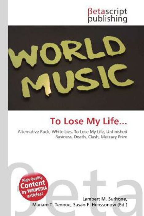 Please note that the content of this book primarily consists of articles available from Wikipedia or other free sources online. To Lose My Life... (also known by extended title of To Lose My Life Or Lose My Love, or shortened as To Lose My Life) is the debut album by the British alternative rock band White Lies. It was released on 19 January 2009. It follows the release of the title track, "To Lose My Life", one week earlier. It includes former singles "Unfinished Business" and "Death". Clash commented that "2009 is theirs for the taking, if they're up to the task", adding that it could be a contender for the annual Mercury Prize. "From the Stars" appeared as iTunes's "Single of the Week" on 30 December 2008. The album was released in the United States on 17 March 2009.