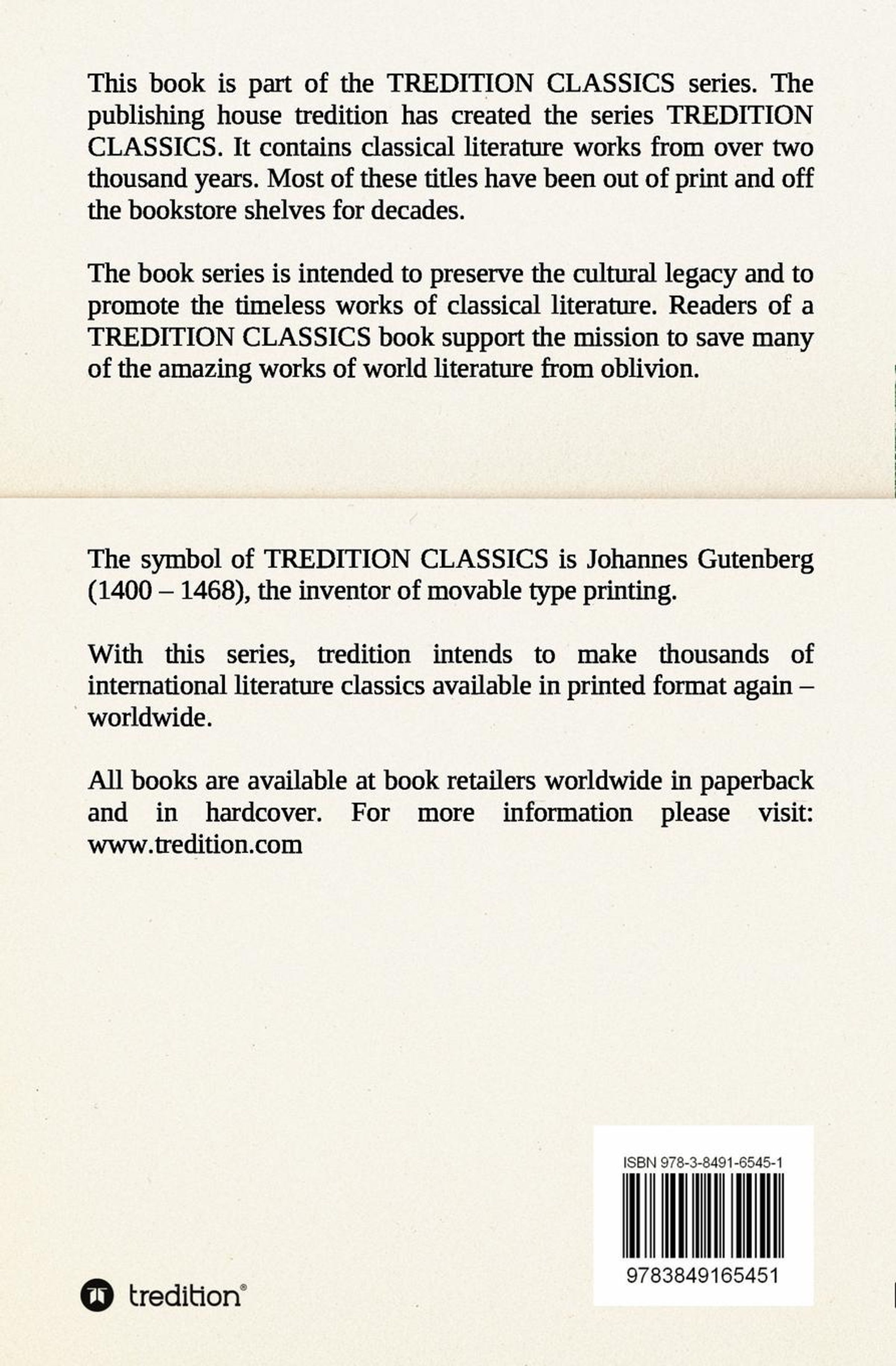 This book is part of the TREDITION CLASSICS. It contains classical literature works from over two thousand years. Most of these titles have been out of print and off the bookstore shelves for decades. The book series is intended to preserve the cultural legacy and to promote the timeless works of classical literature. Readers of a TREDITION CLASSICS book support the mission to save many of the amazing works of world literature from oblivion. With this series, tredition intends to make thousands of international literature classics available in printed format again worldwide.