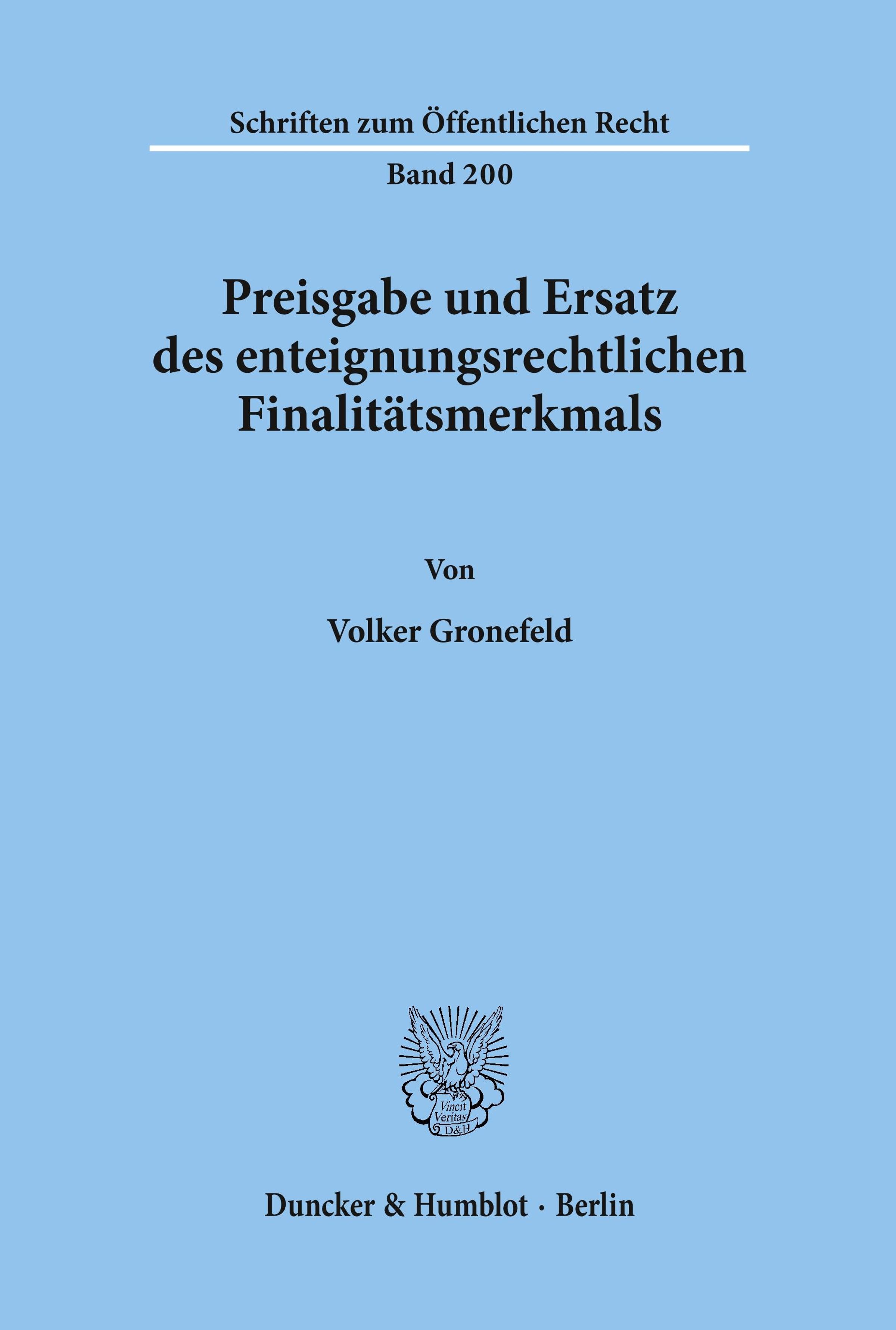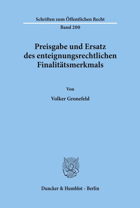 Volker Gronefeld: Preisgabe und Ersatz des enteignungsrechtlichen Finalitätsmerkmals., Kartoniert / Broschiert