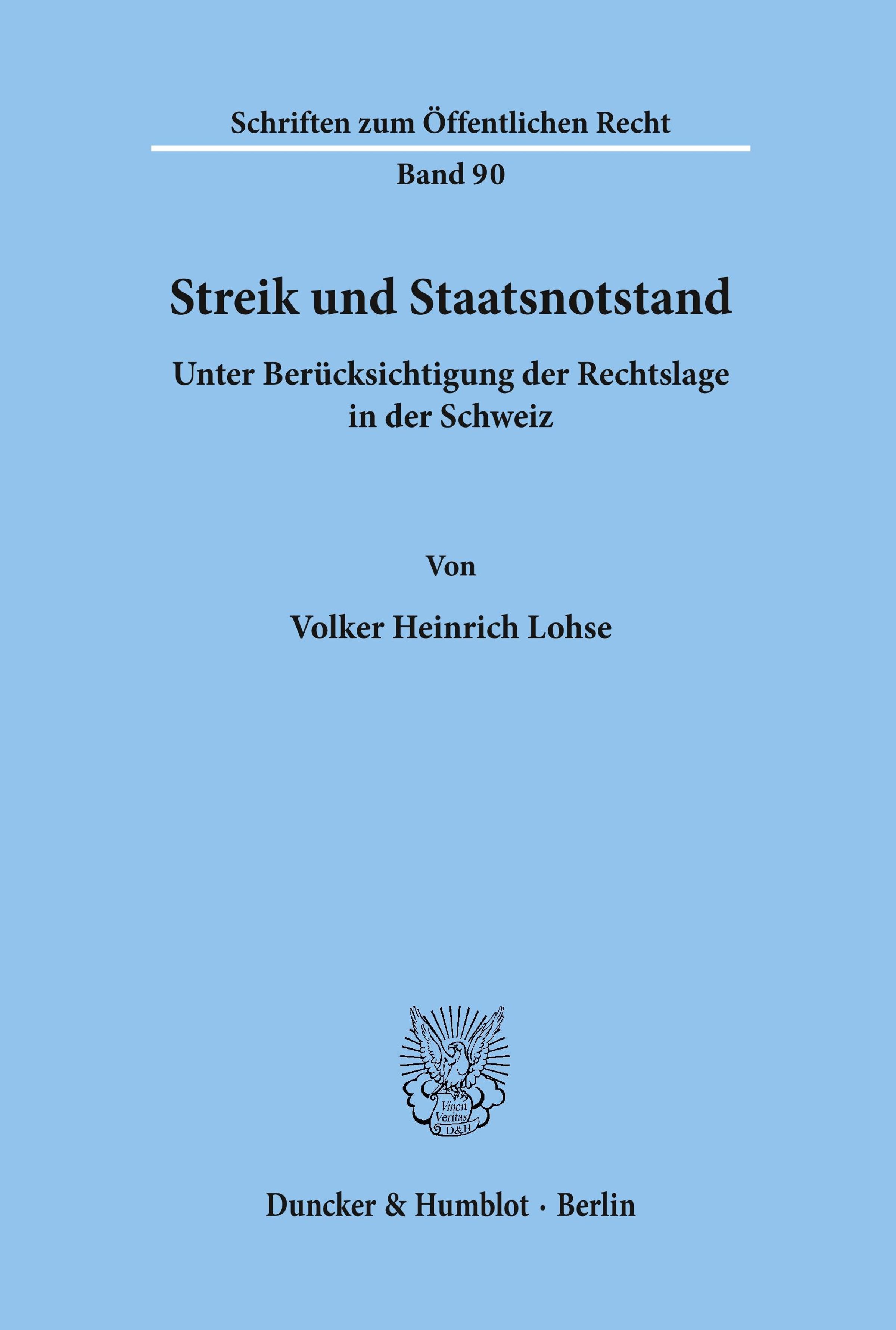 Volker Heinrich Lohse: Streik und Staatsnotstand unter Berücksichtigung der Rechtslage in der Schweiz., Kartoniert / Broschiert