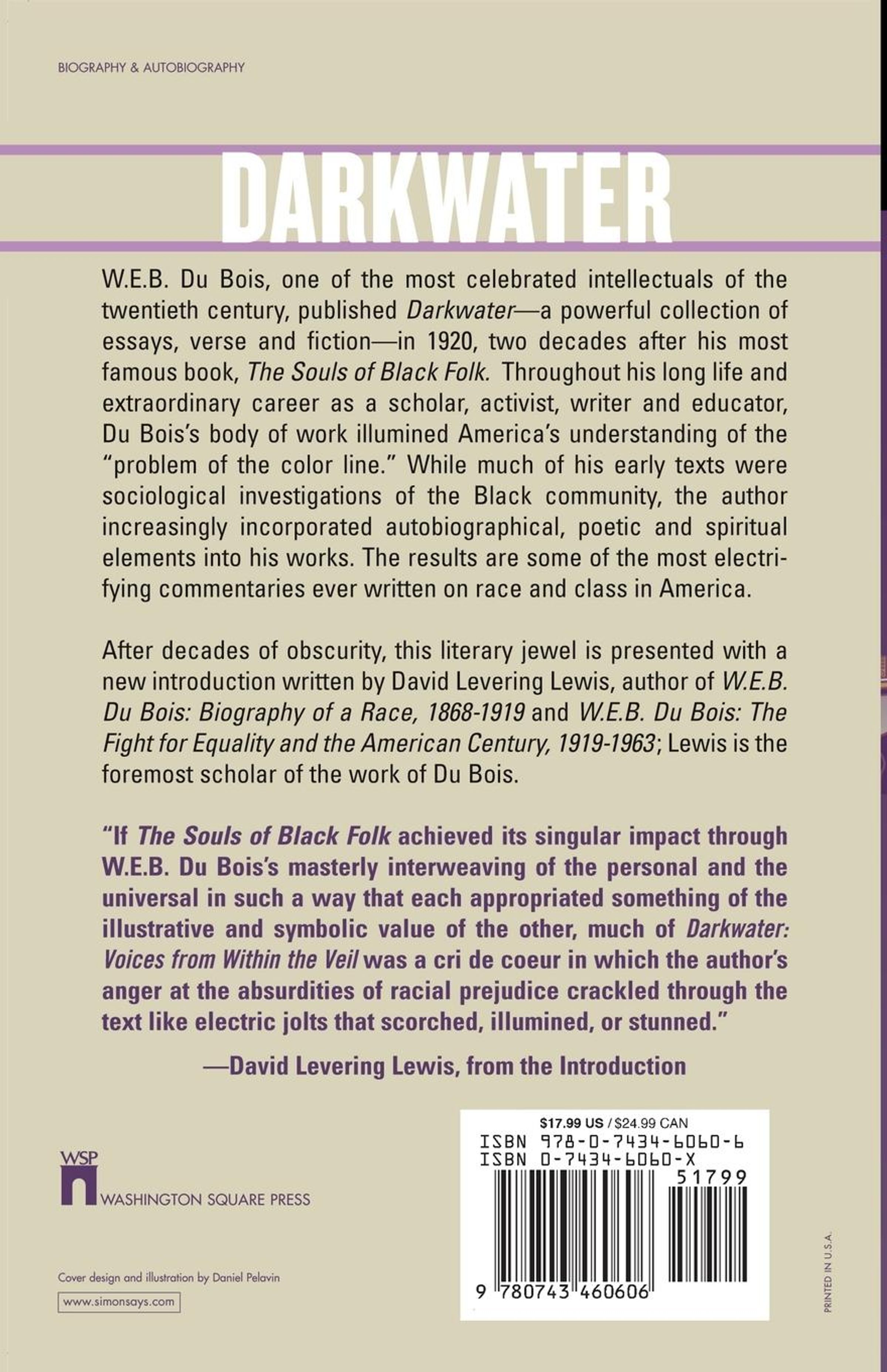 W. E.B. Du Bois, one of the most celebrated intellectuals of the twentieth century, published Darkwater -- a powerful collection of essays, verse and fiction -- in 1920, two decades after his most famous book, The Souls of Black Folk. Throughout his long life and extraordinary career as a scholar, activist, writer and educator, Du Bois's body of work illumined America's understanding of the "problem of the color line." While much of his early texts were sociological investigations of the Black community, the author increasingly incorporated autobiographical, poetic and spiritual elements into his works. The results are some of the most electrifying commentaries ever written on race and class in America.