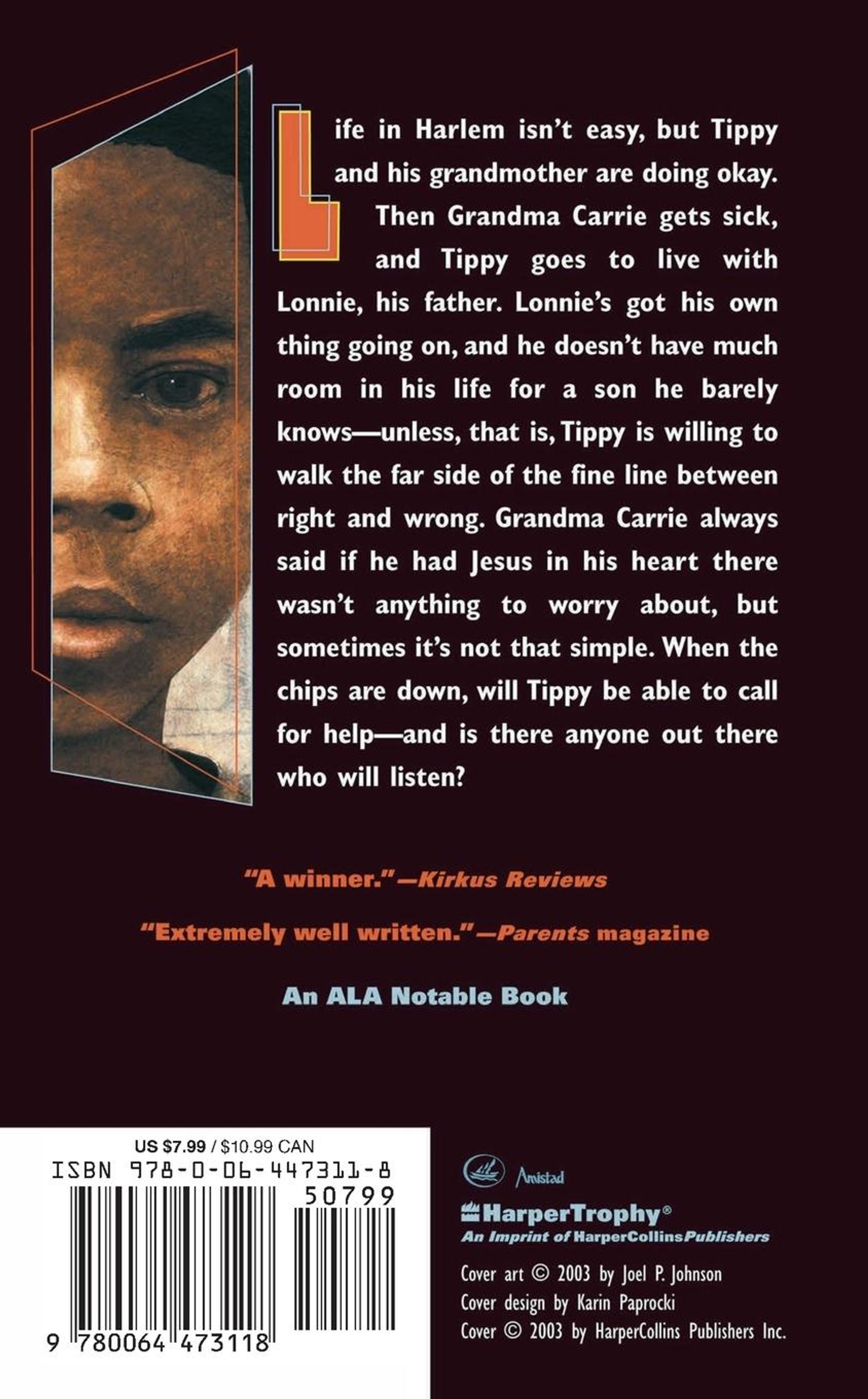 Life in Harlem isn't easy, but Tippy and his grandmother are doing okay. Then Grandma Carrie gets sick, and Tippy goes to live with Lonnie, his father. Lonnie's got his own thing going on, and he doesn't have much room in his life for a son he barely knows -- unless, that is, Tippy is willing to walk the far side of the fine line between right and wrong. Grandma Carrie always said if he had Jesus in his heart there wasn't anything to worry about, but sometimes it's not that simple. When the chips are down, will Tippy be able to call for help -- and is there anyone out there who will listen?
