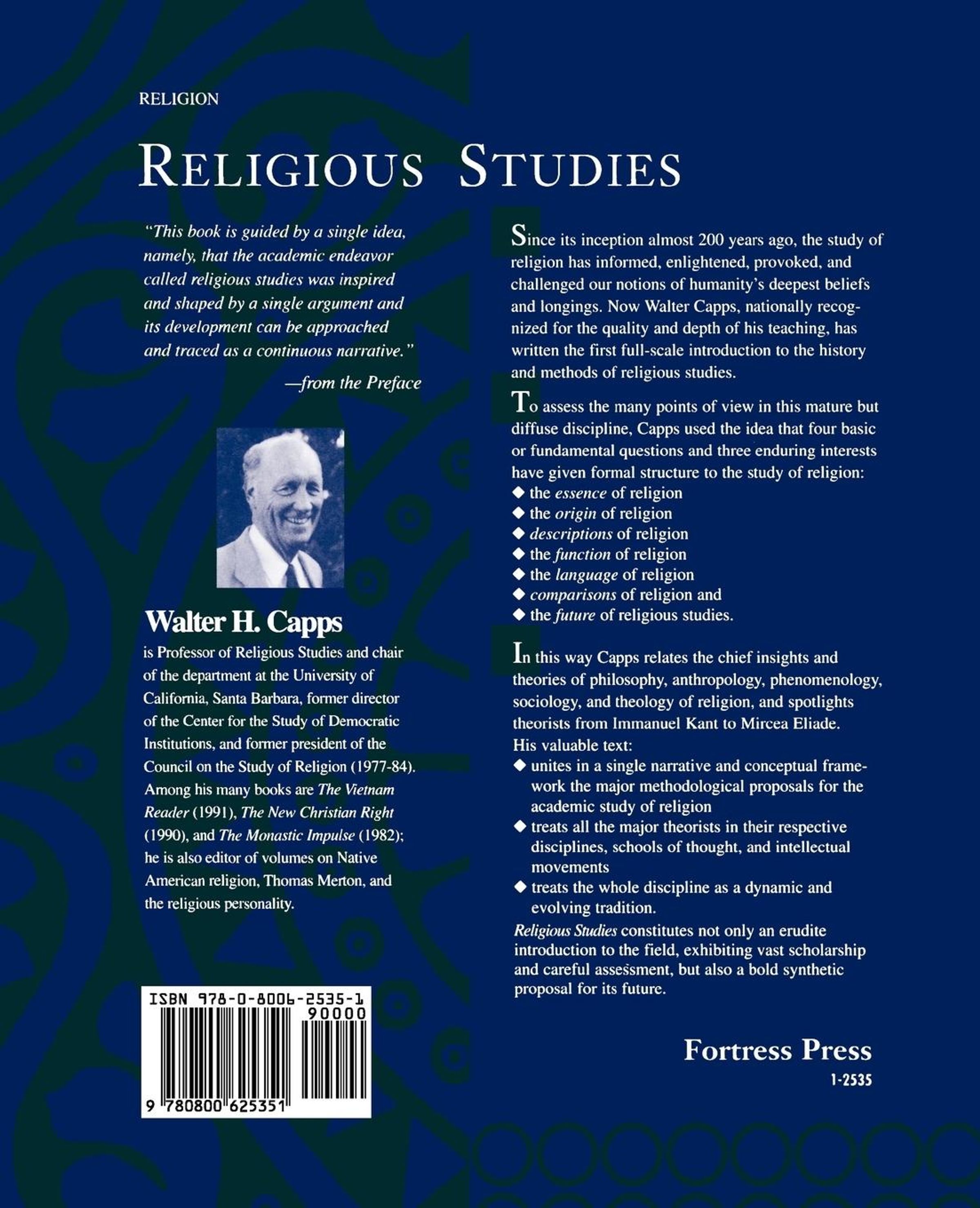 Since its inception almost 200 years ago, the study of religion has informed, enlightened, provoked, and challenged our notions of humanity's deepest beliefs and longings. Now Walter Capps, nationally recognized for the quality and depth of his teaching, has written the first full-scale introduction to the history and methods of religious studies.