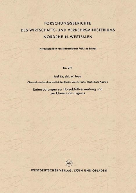 Walter Maximilian Fuchs: Untersuchungen zur Holzabfallverwertung und zur Chemie des Lignins, Kartoniert / Broschiert
