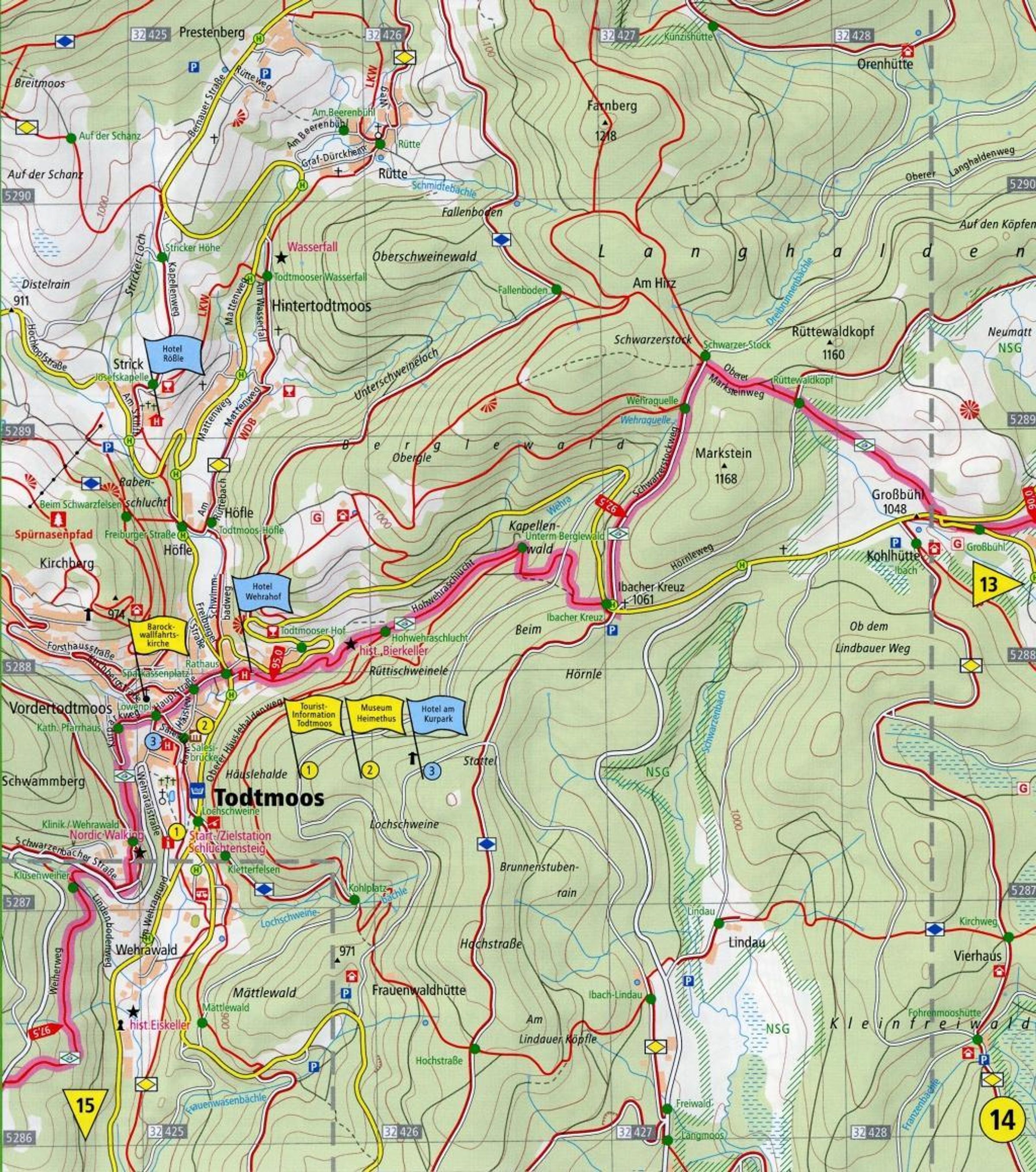 Wanderkarte Schluchtensteig Schwarzwald, Stühlingen - Wehr 1 : 25 000