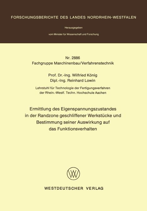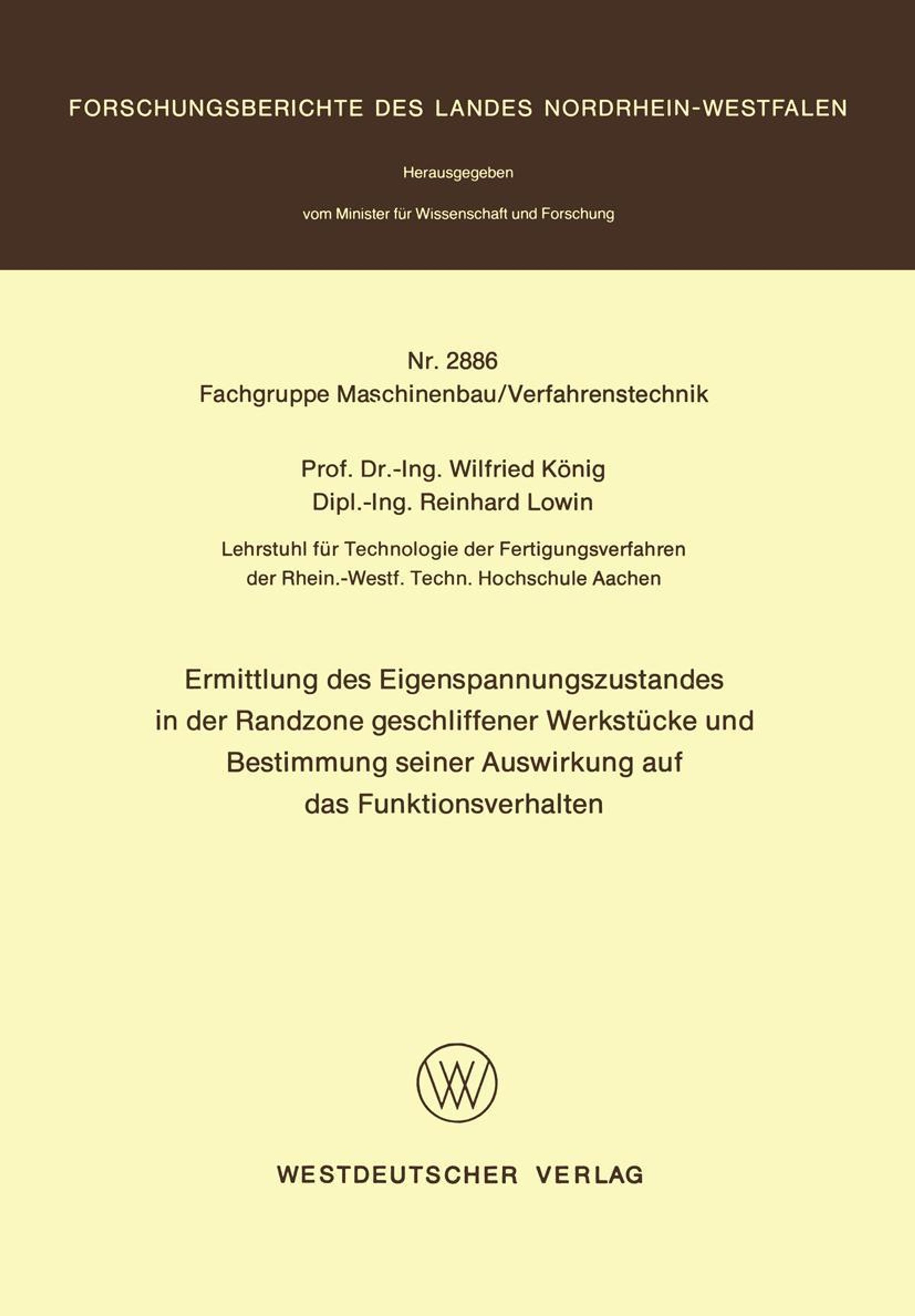 Der Artikel Wilfried König: Ermittlung des Eigenspannungszustandes in der Randzone geschliffener Werkstücke und Bestimmung seiner Auswirkung auf das Funktionsverhalten wurde in den Warenkorb gelegt.