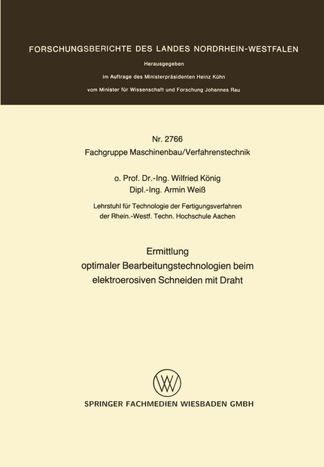 Der Artikel Wilfried König: Ermittlung optimaler Bearbeitungstechnologien beim elektroerosiven Schneiden mit Draht wurde in den Warenkorb gelegt.