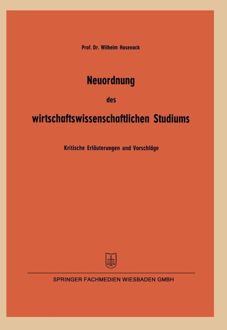 Wilhelm Hasenack: Neuordnung des wirtschaftswissenschaftlichen Studiums, Kartoniert / Broschiert