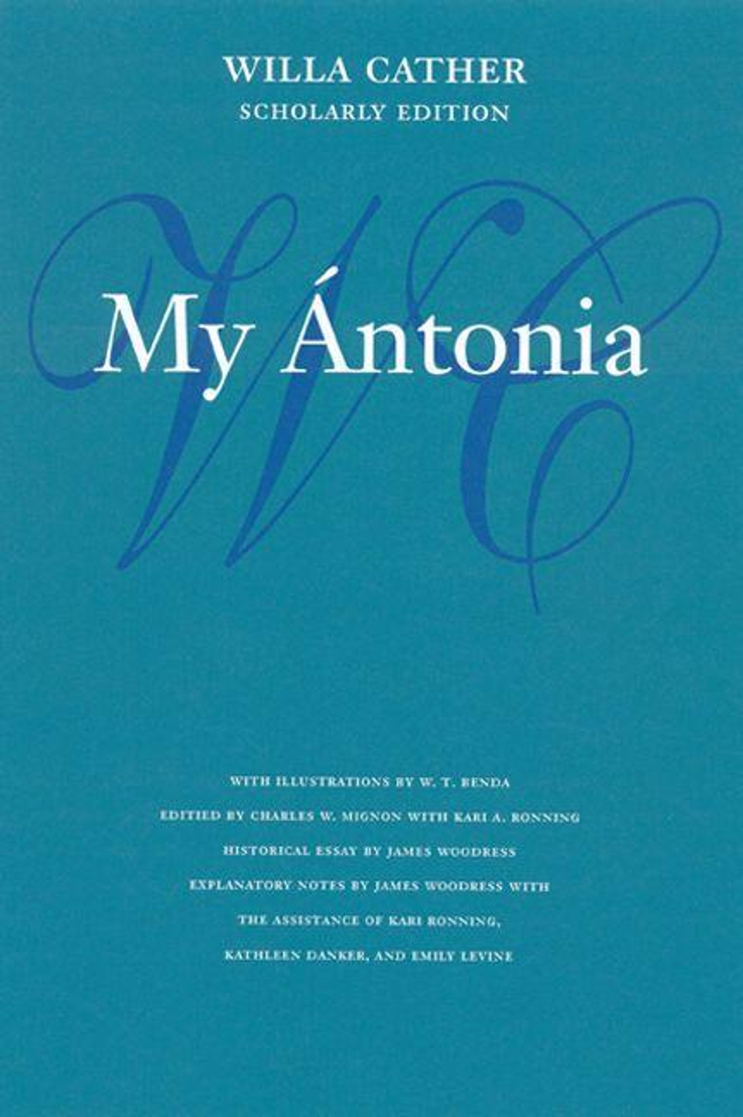 Hailed by reviewers and readers for its originality, vitality, and truth, "My Antonia" secured Willa Cather's place in the first rank of American writers. Cather drew deeply on her childhood days in frontier Nebraska for her fourth novel, published in 1918. Antonia Shimerda is memorable as the warm-hearted daughter of Bohemians who must adapt to a hard life on the desolate prairie. She survives and matures, a pioneer woman made radiant by spirit. This Willa Cather Scholarly Edition of "My Antonia" is edited according to standards set by the Committee for Scholarly Editions of the Modern Language Association and it presents the full range of biographical, historical, and textual information on the novel. The selection of W. T. Benda's illustrations and the historical photography and maps also illuminate the fiction of a writer who drew so extensively on actual experience.