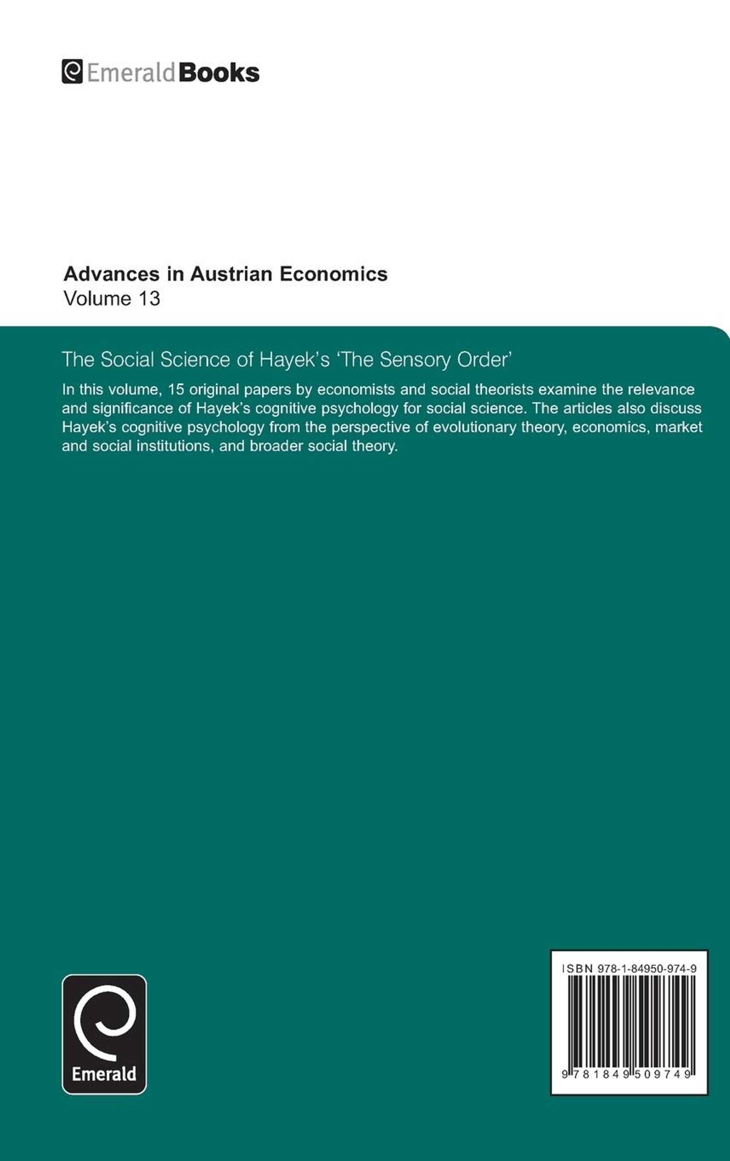 The Social Science of Hayek's The Sensory Order, Buch, Buch