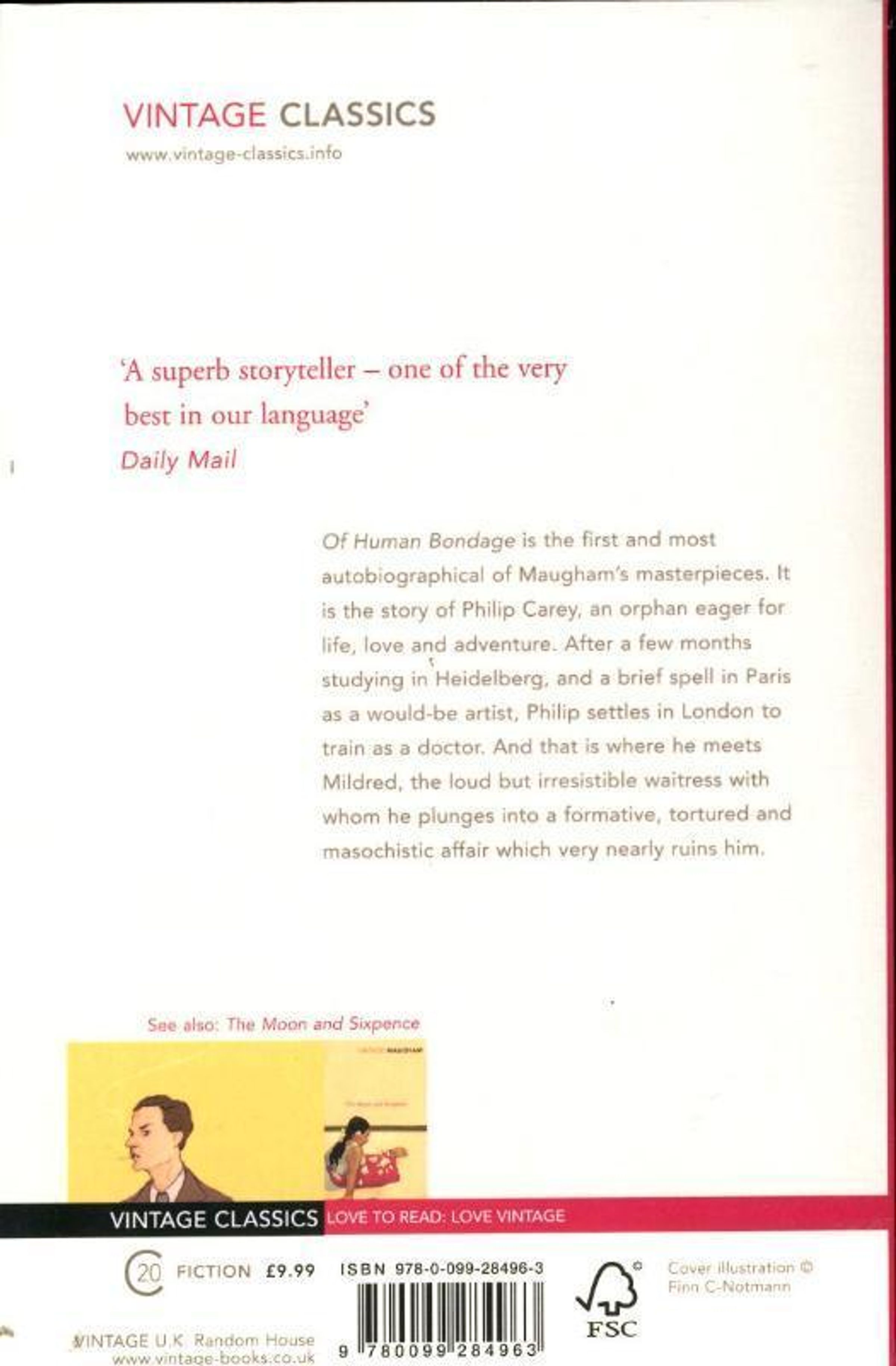 Of Human Bondage is the first and most autobiographical of Maugham's masterpieces. It is the story of Philip Carey, an orphan eager for life, love and adventure. After a few months studying in Heidelberg, and a brief spell in Paris as would-be artist, Philip settles in London to train as a doctor.