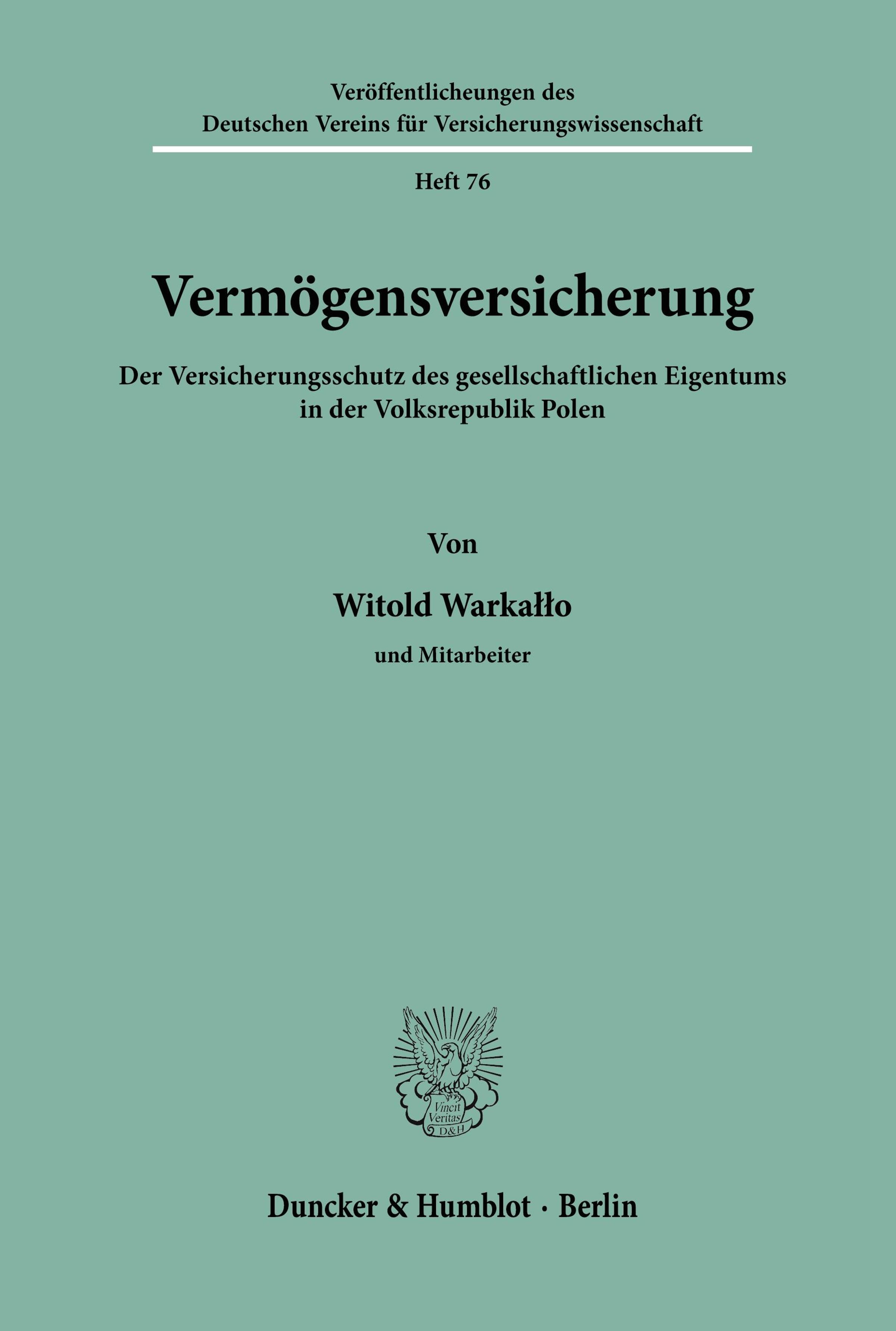 Witold Warka¿¿o: Vermögensversicherung., Kartoniert / Broschiert