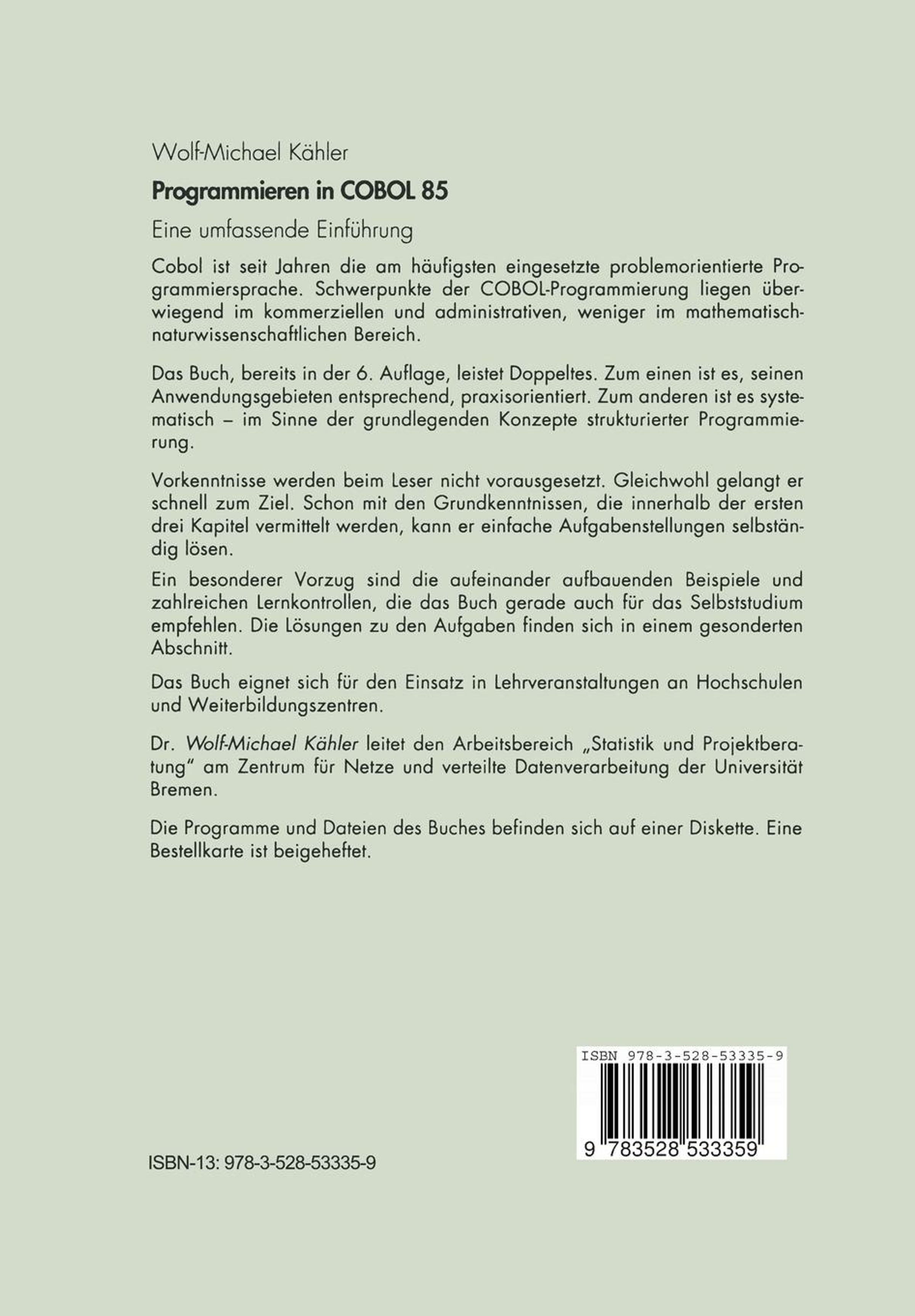 Wolf-Michael Kähler: Programmieren in COBOL 85, Kartoniert / Broschiert