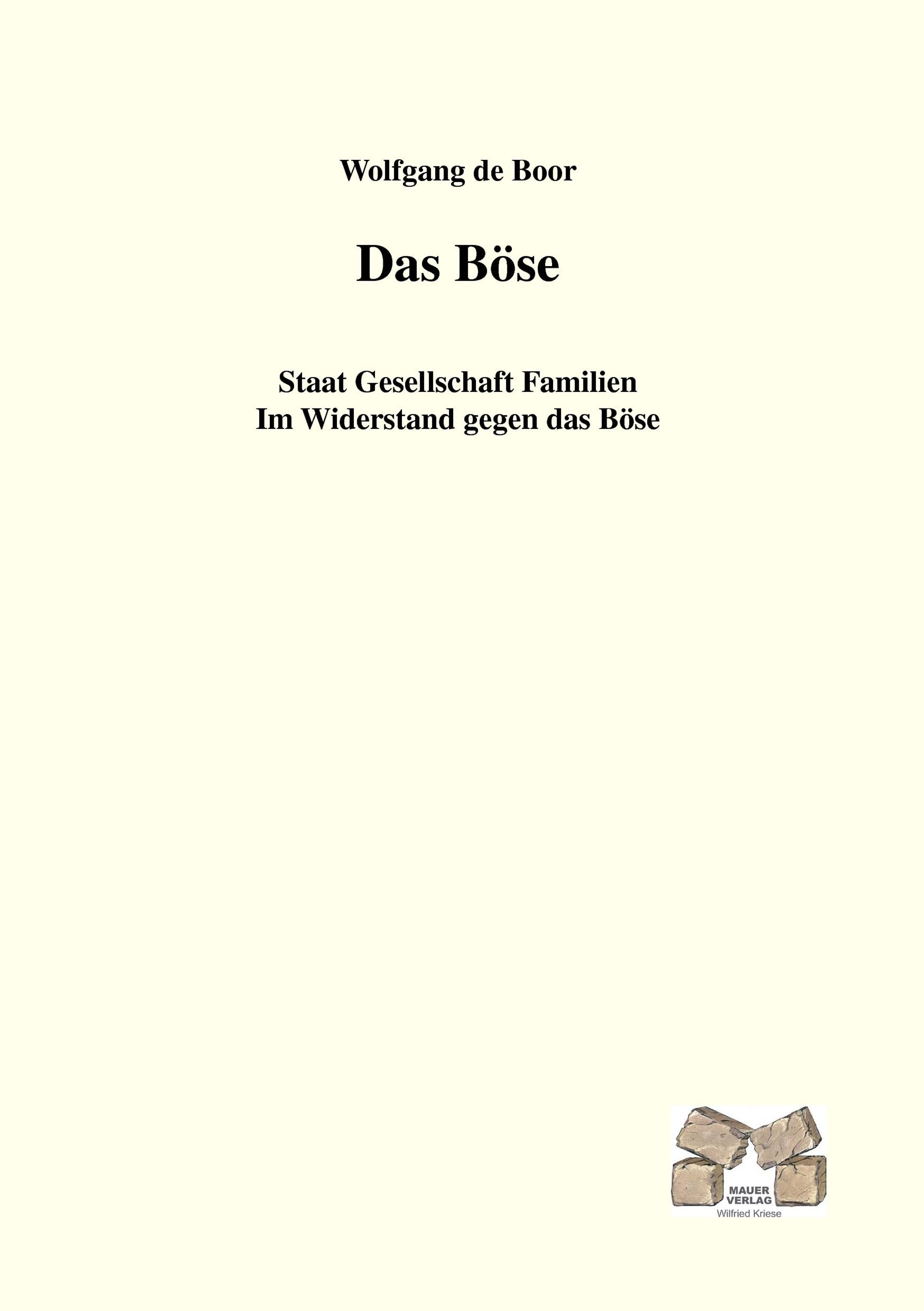Wolfgang De Boor: Das Böse, Buch, Buch