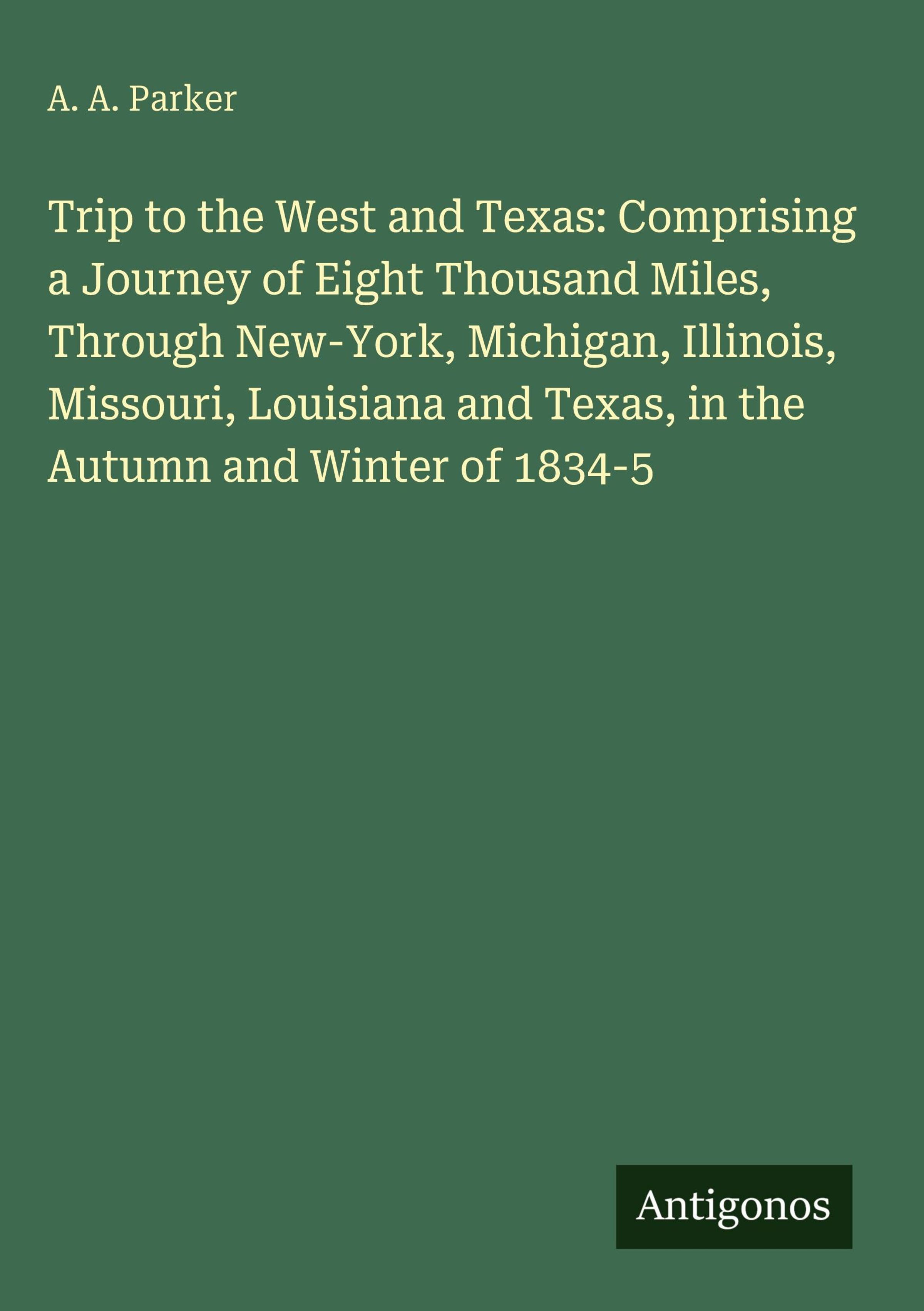 A. A. Parker: Trip to the West and Texas: Comprising a Journey of Eight Thousand Miles, Through New-York,..., Gebunden