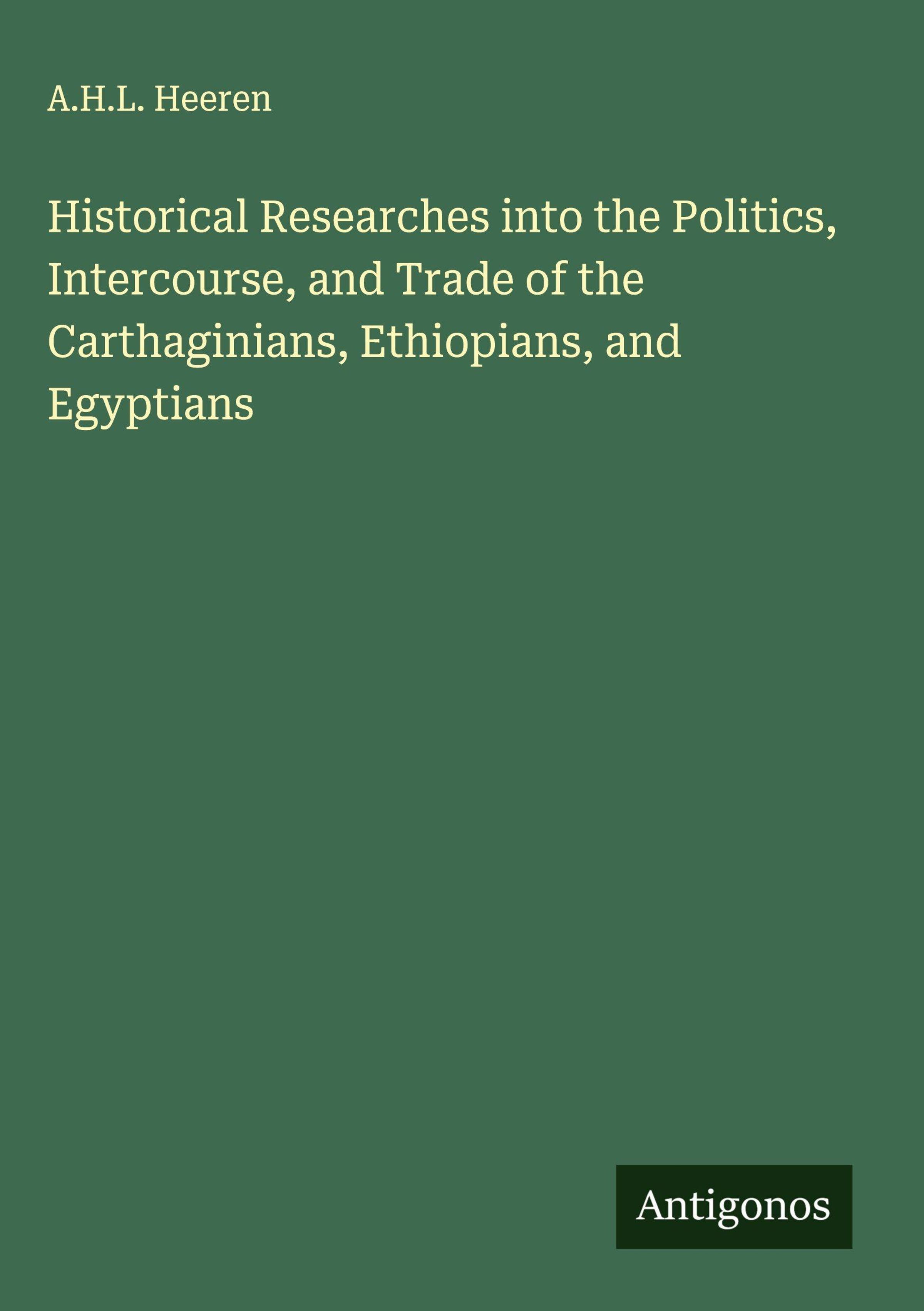 Historical Researches into the Politics, Intercourse, and Trade of the Carthaginians, Ethiopians, and Egyptians