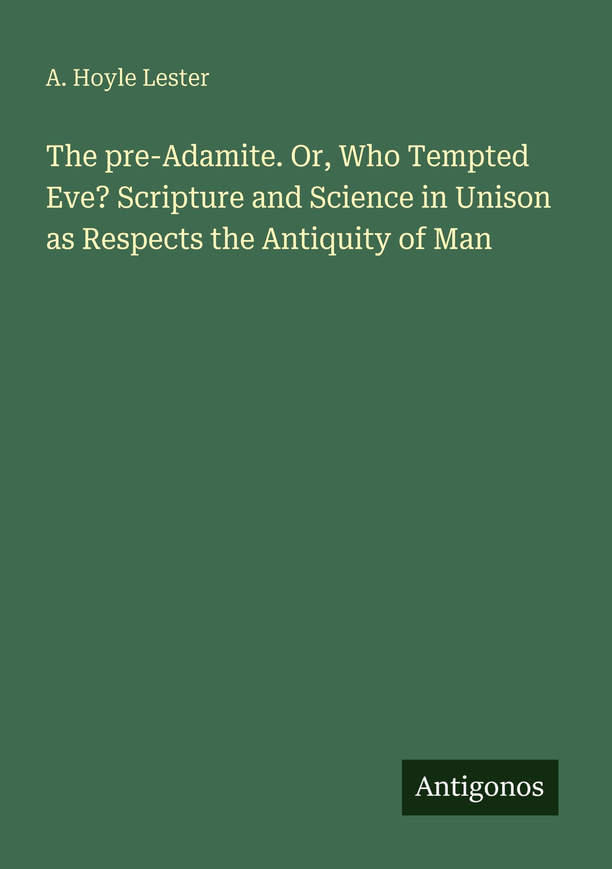A. Hoyle Lester: The pre-Adamite. Or, Who Tempted Eve? Scripture and Science in Unison as Respects the Antiquity..., Kartoniert / Broschiert
