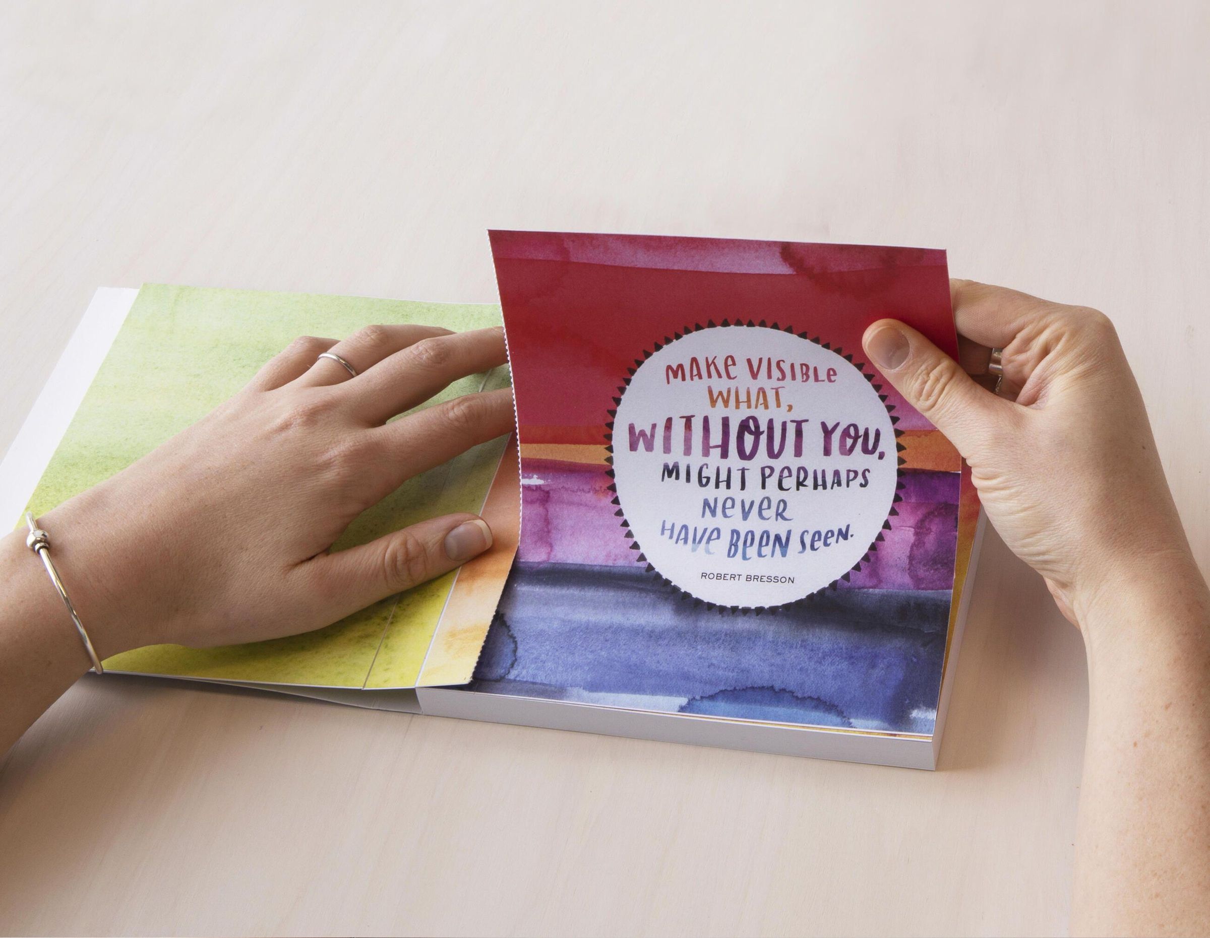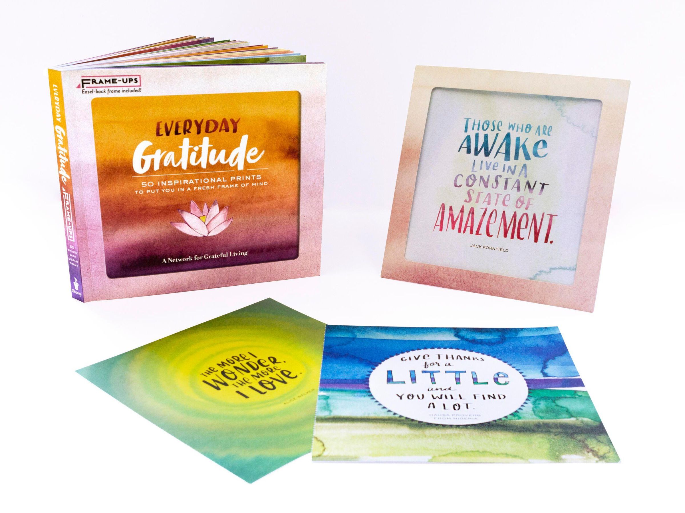 Refresh your perspective every day. Select from 50 artfully hand-lettered expressions of gratitude, curated by A Network for Grateful Living. The pull-out prints are ready for display in the decorative frame included.