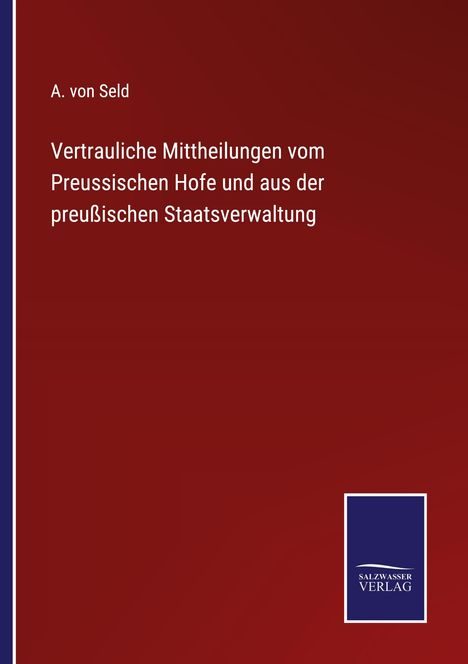 A. von Seld: Vertrauliche Mittheilungen vom Preussischen Hofe und aus der preußischen Staatsverwaltung, Kartoniert / Broschiert