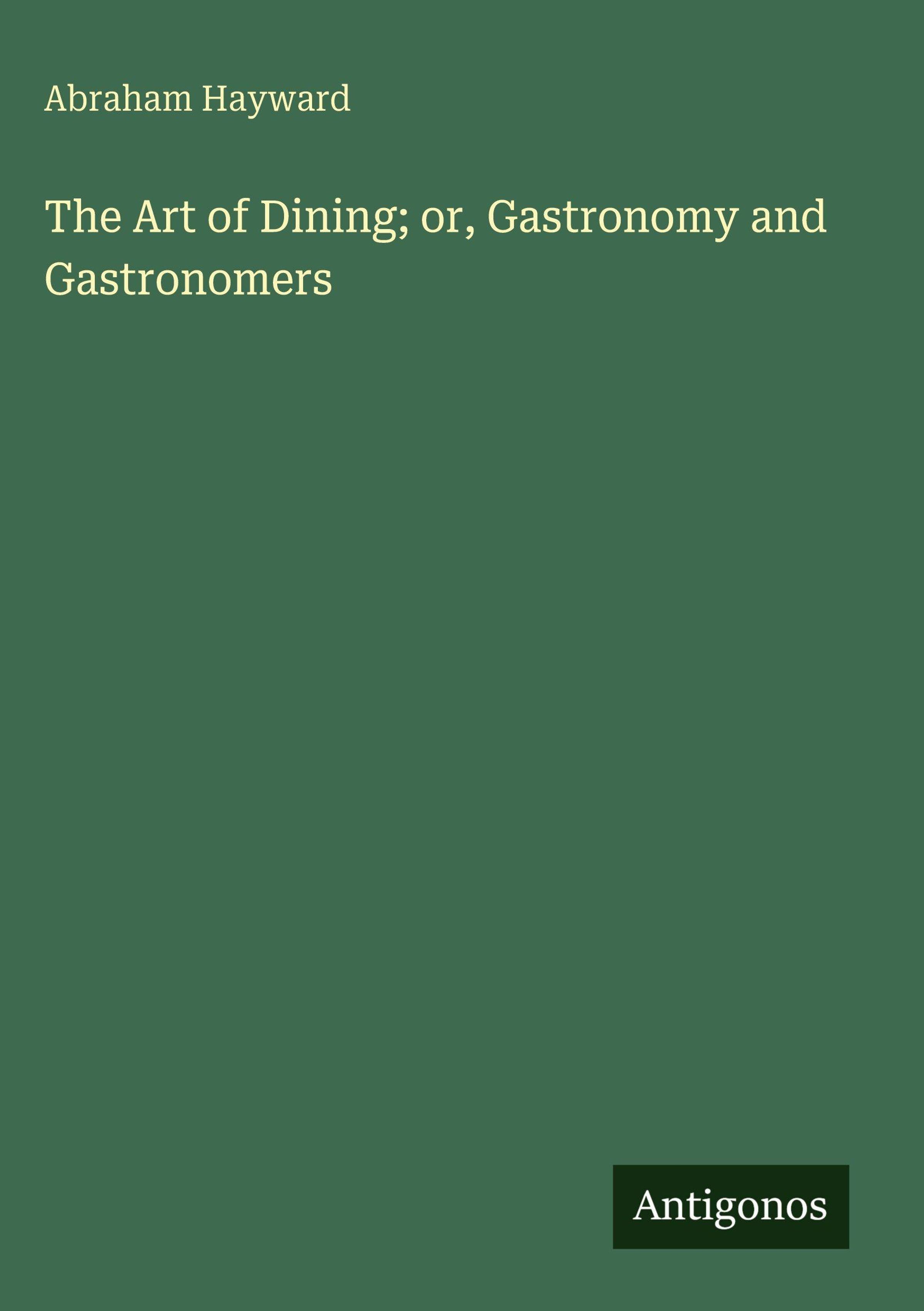 Abraham Hayward: The Art of Dining; or, Gastronomy and Gastronomers, Gebunden