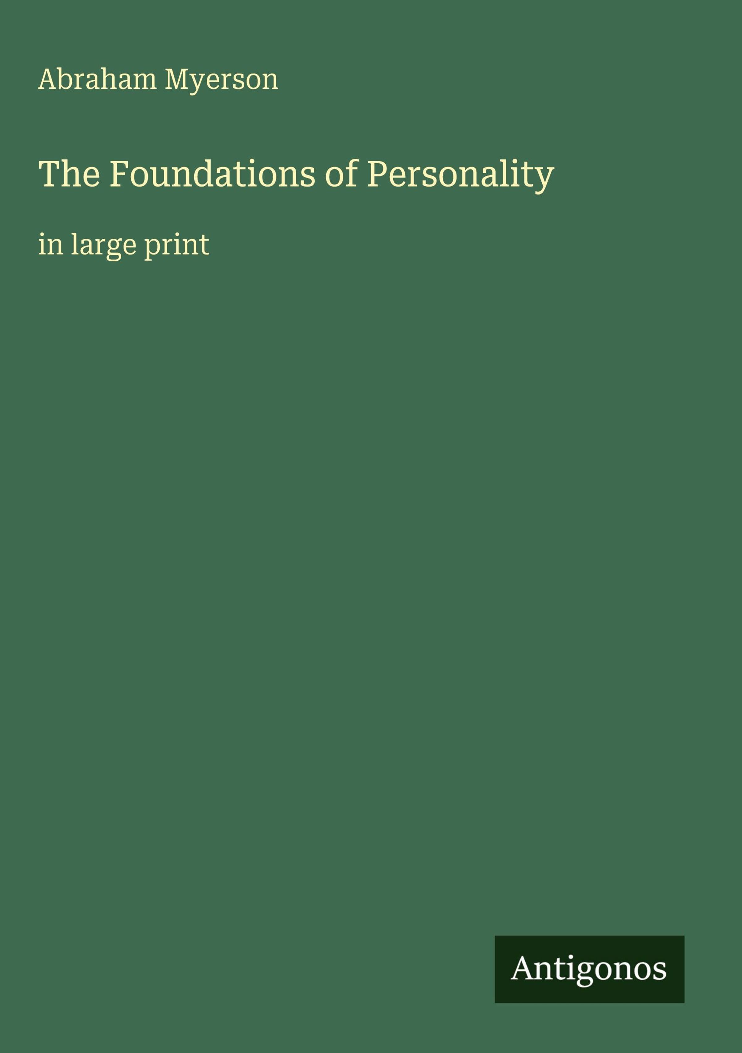 Abraham Myerson, The Foundations of Personality in large print. Unten rechts steht Antigonos. Hintergrund in Dunkelgrün., Buch