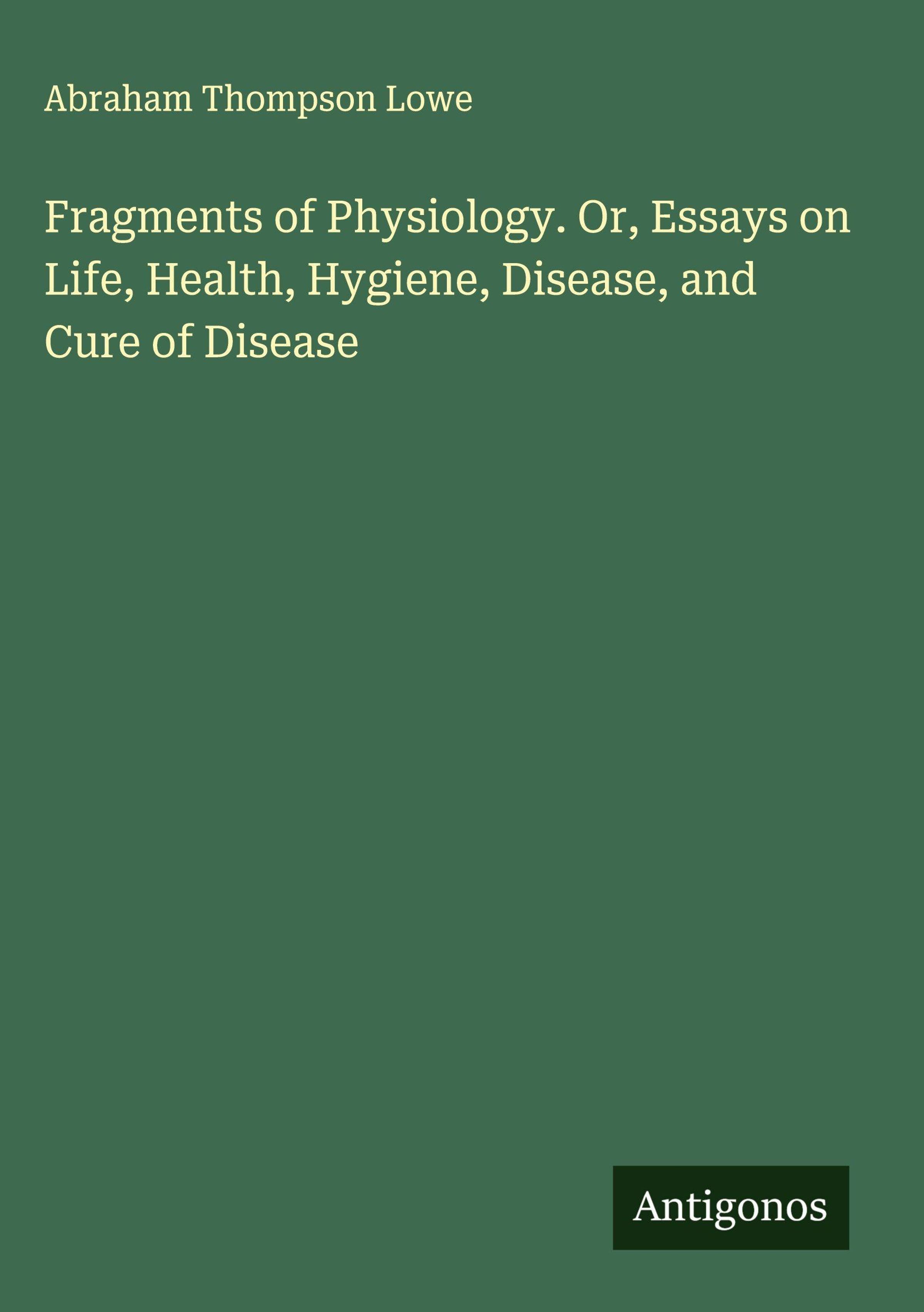 Abraham Thompson Lowe: Fragments of Physiology. Or, Essays on Life, Health, Hygiene, Disease, and Cure of Disease, Gebunden