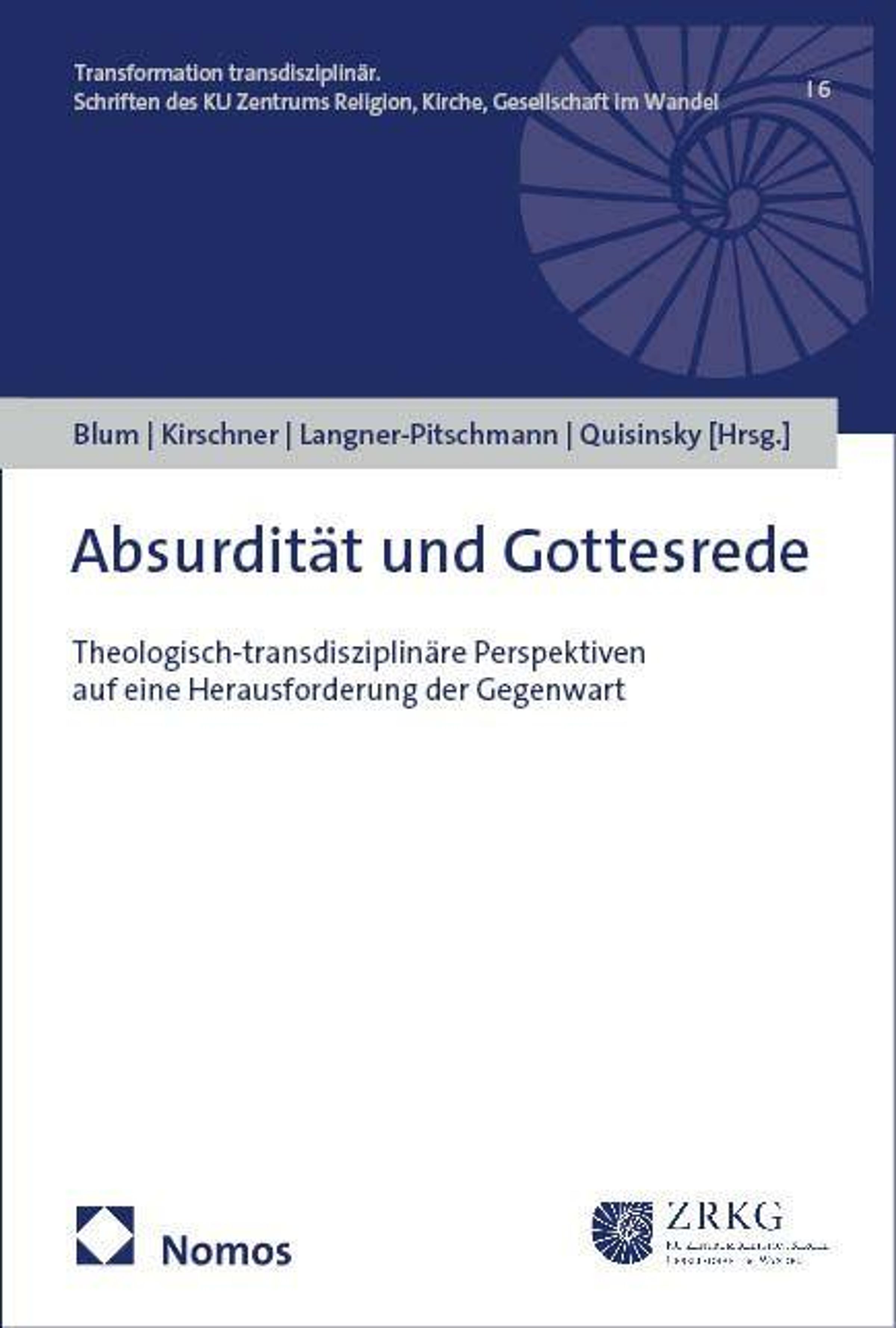 Der Titel lautet "Absurdität und Gottesrede". Unten sind Logos von Nomos und dem ZRKG sichtbar., Buch