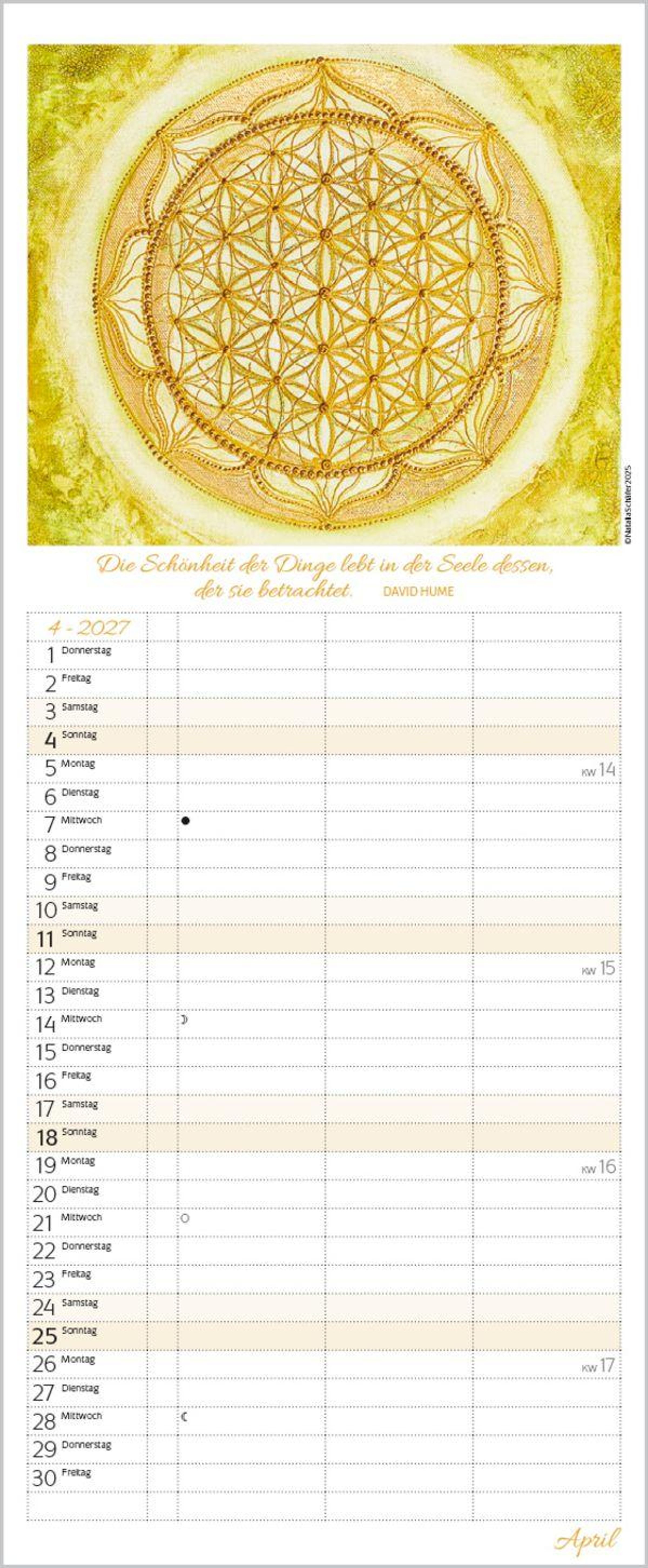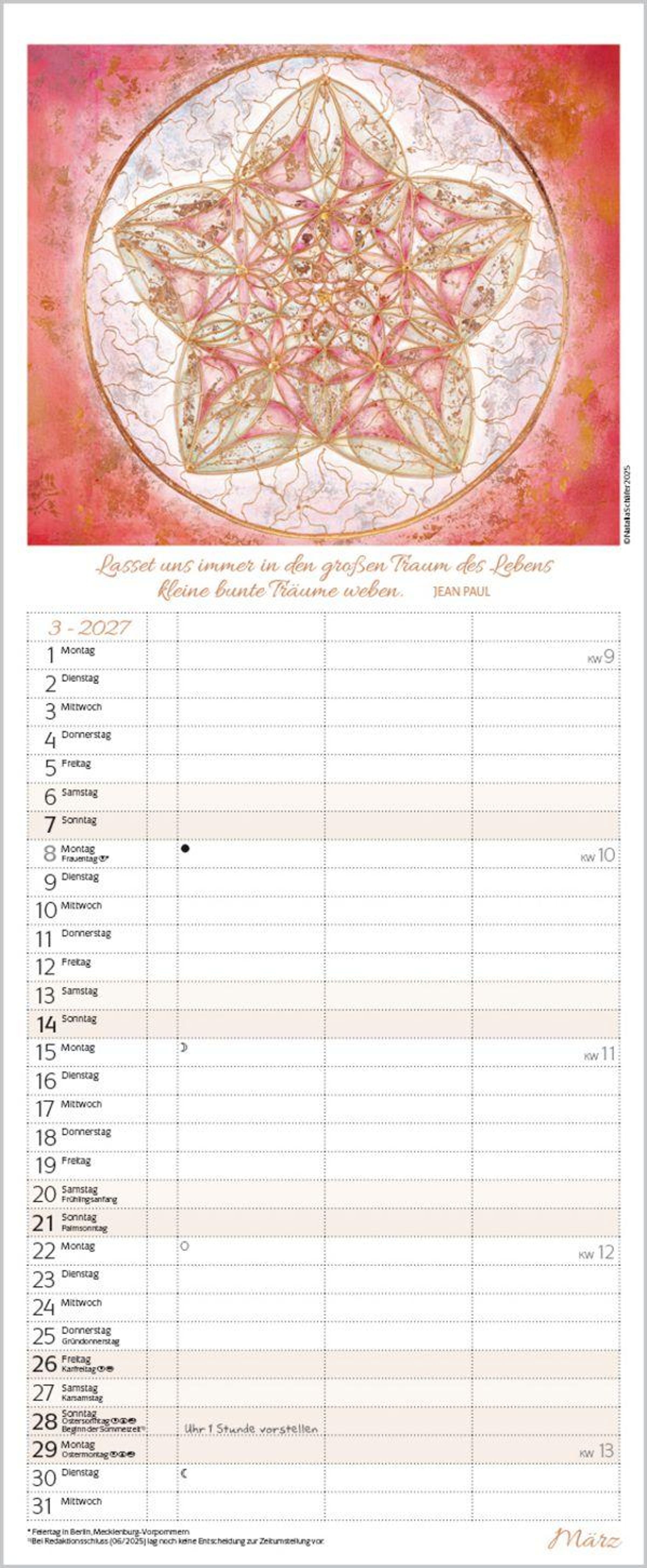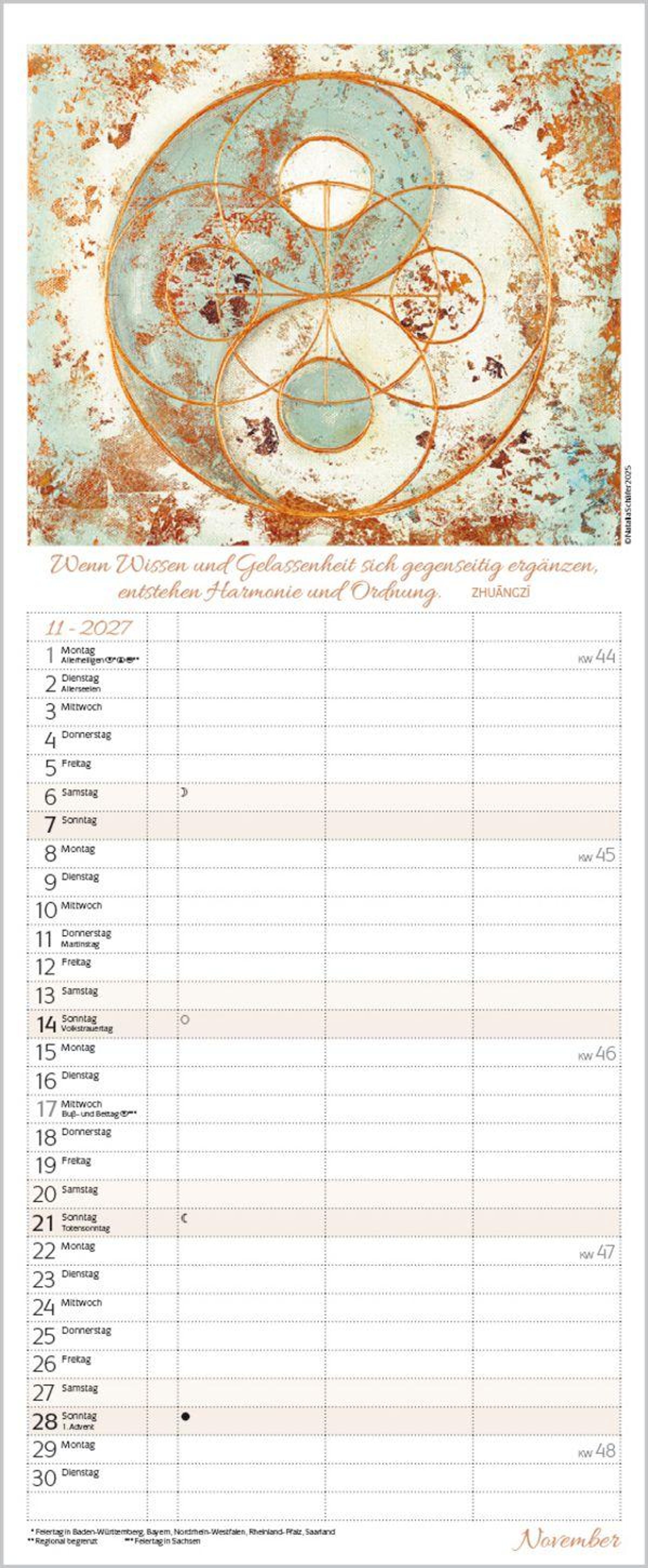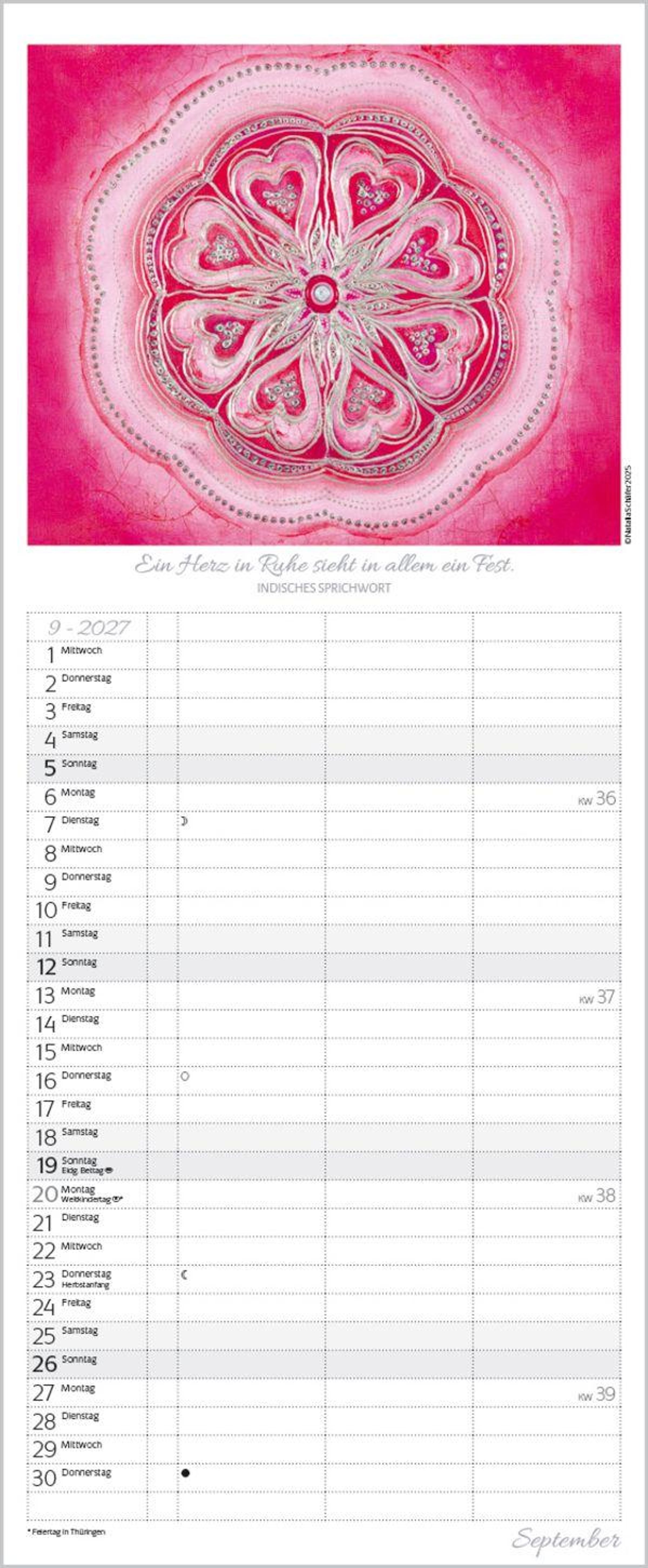 - Familienplaner mit 3 breiten Spalten. Familienkalender zum Thema Achtsamkeit, mit Ferienterminen, Vorschau bis März 2027 und vielem mehr.