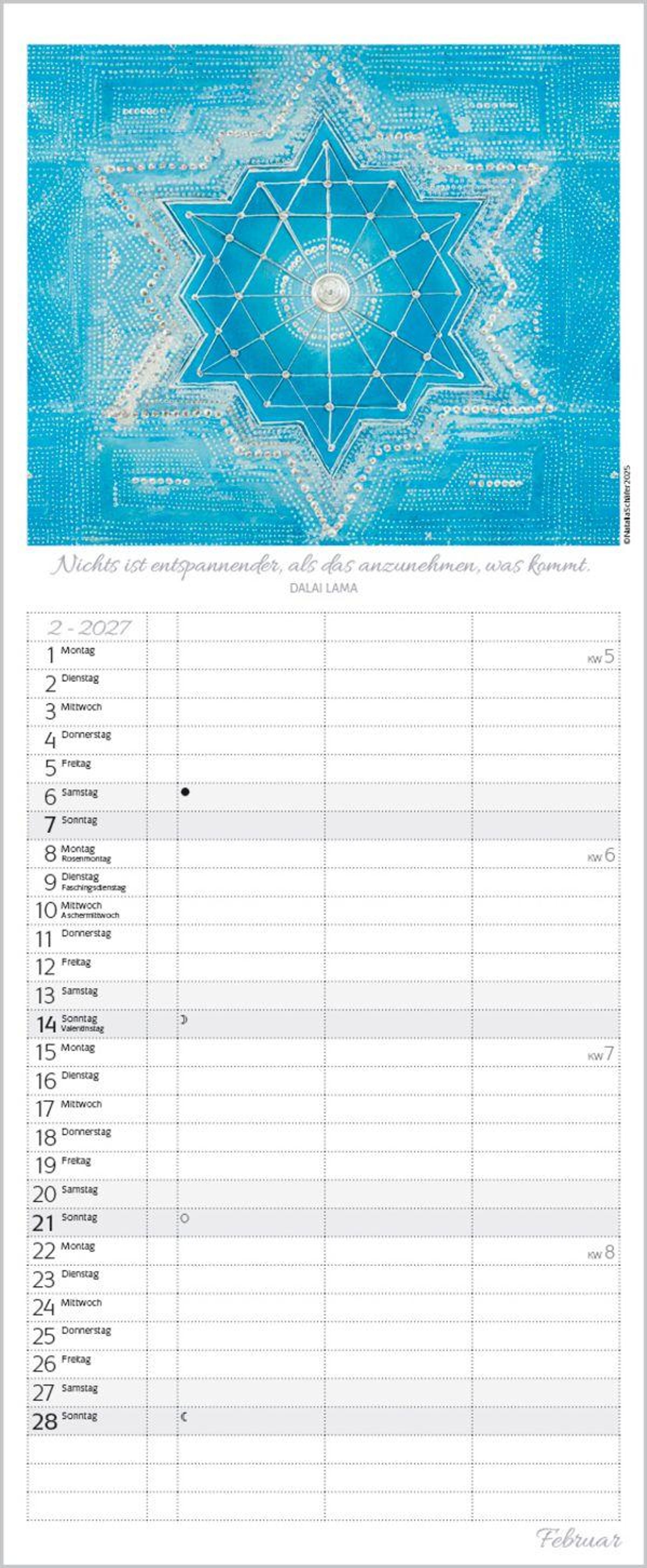 Achtsam planen lässt es sich am besten mit dem Timer für 2 mit den ornamentalen Werken von Natalia Schäfer. Gemeinsam mit 12 Zitaten leiten die Motive durch das neue Jahr.