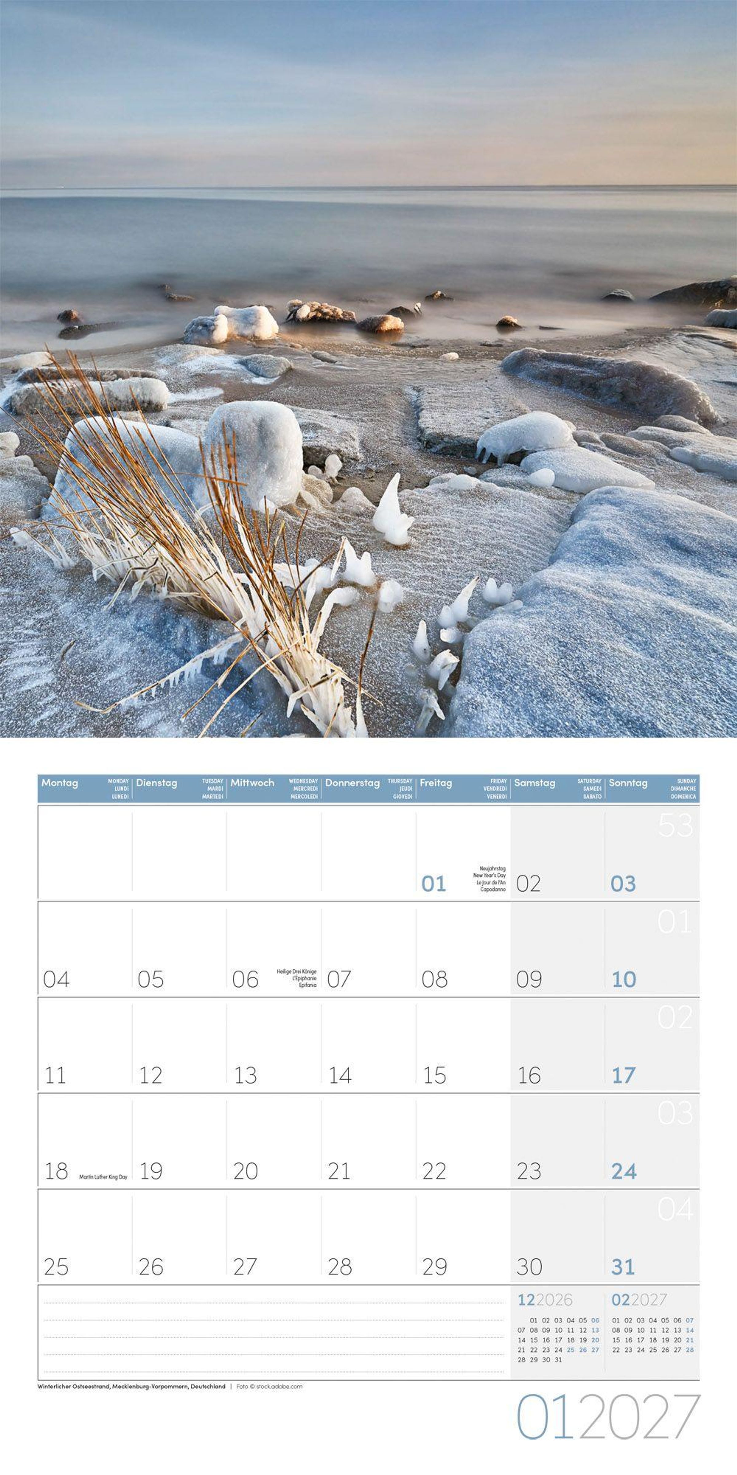 An Nordsee und Ostsee bieten Deutschlands Küsten und Strände alles, was man sich vom Meer wünscht: Entspannung pur, Wellenrauschen, Sand zwischen den Zehen und wunderschöne Aussichten aufs Wasser, die von den Rufen der Möwen untermalt werden. Ein Kalender für alle, die von langen Strandspaziergängen träumen. Alle Art12-Kalender sind mit einem Jahresplaner ausgestattet.