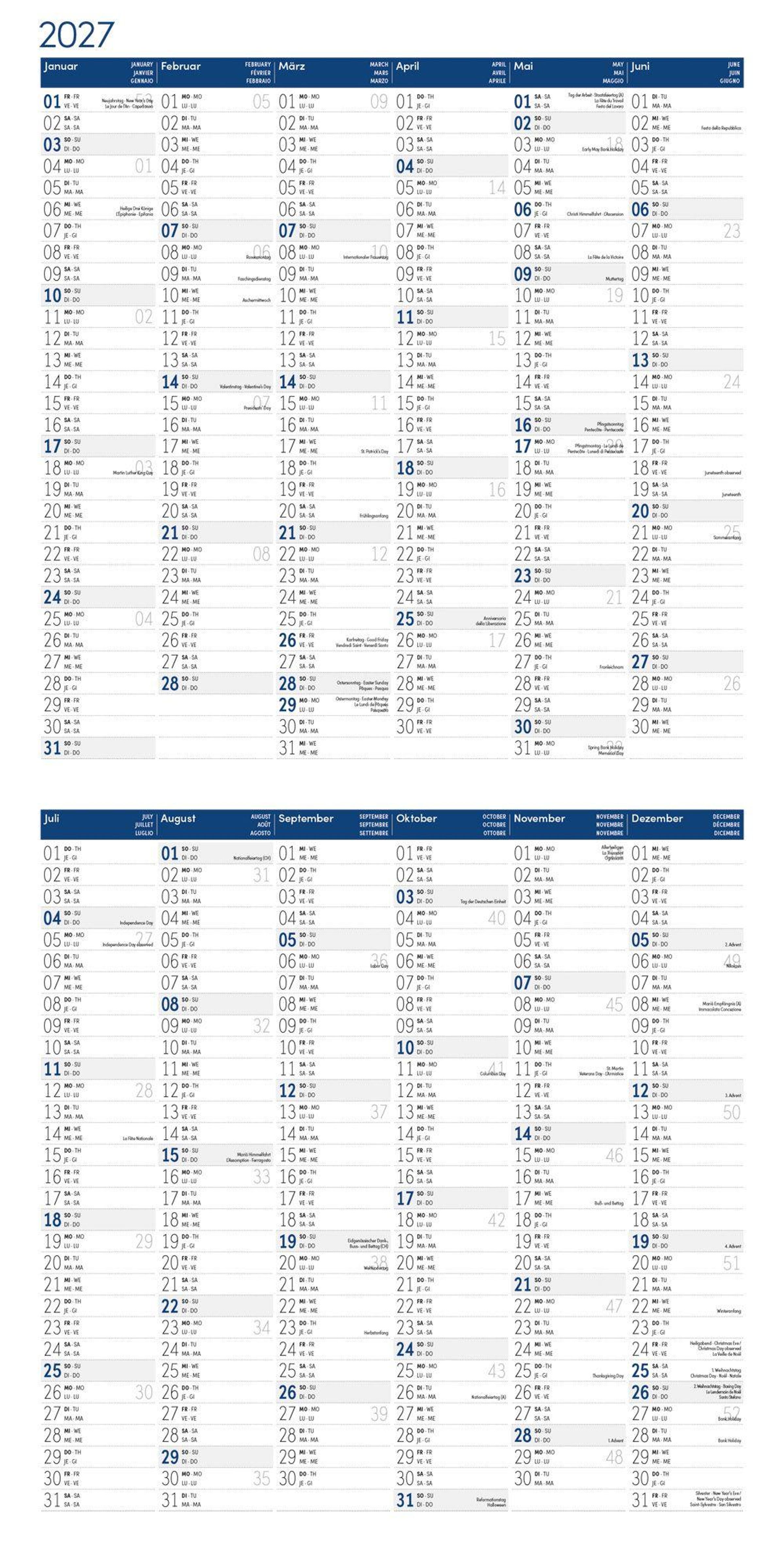 4-sprachiges Kalendarium: Deutsch, Englisch, Französisch, Italienisch