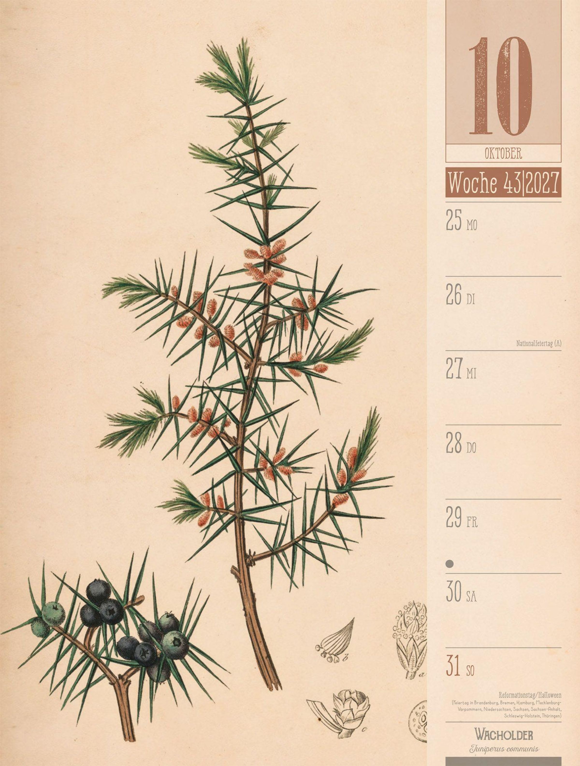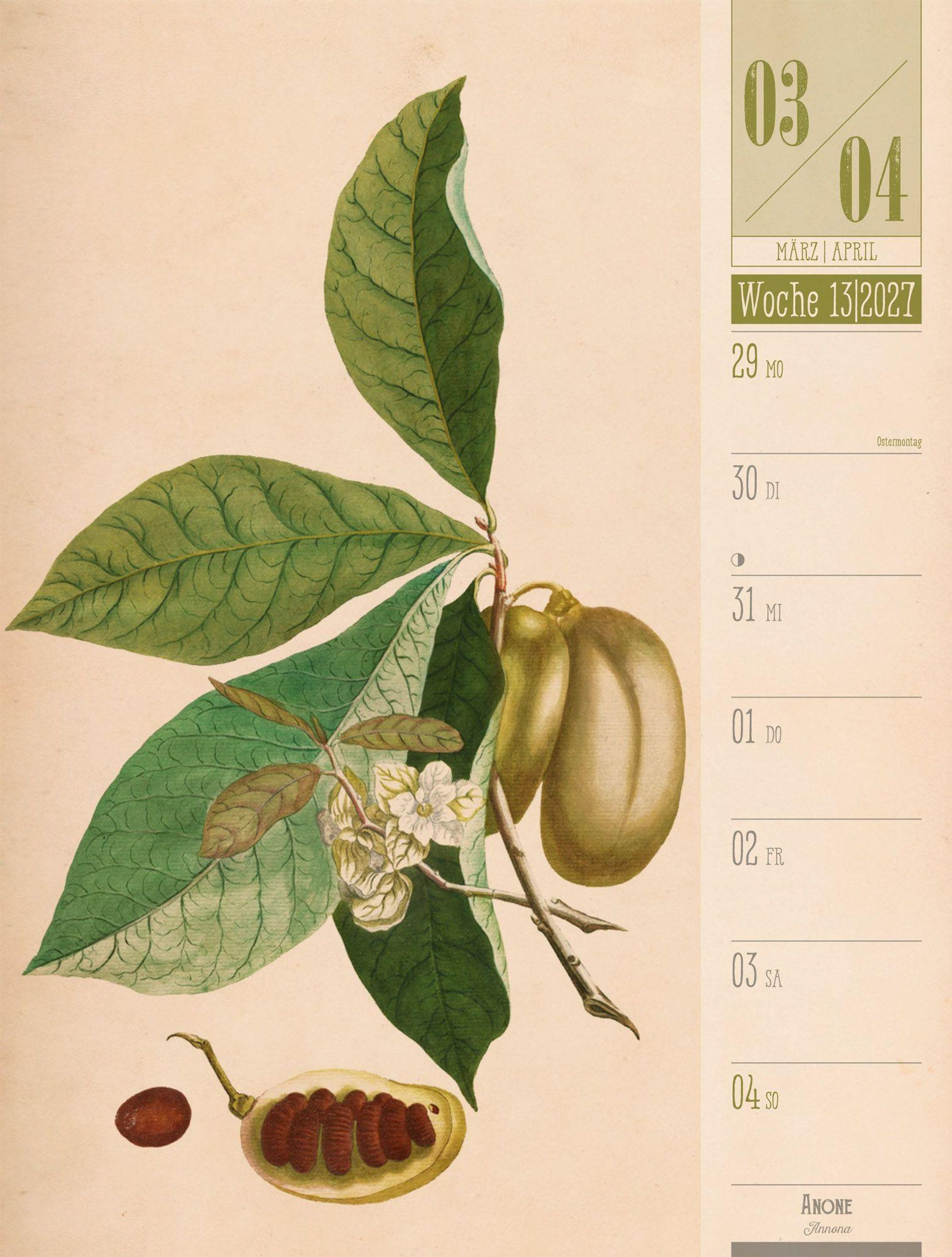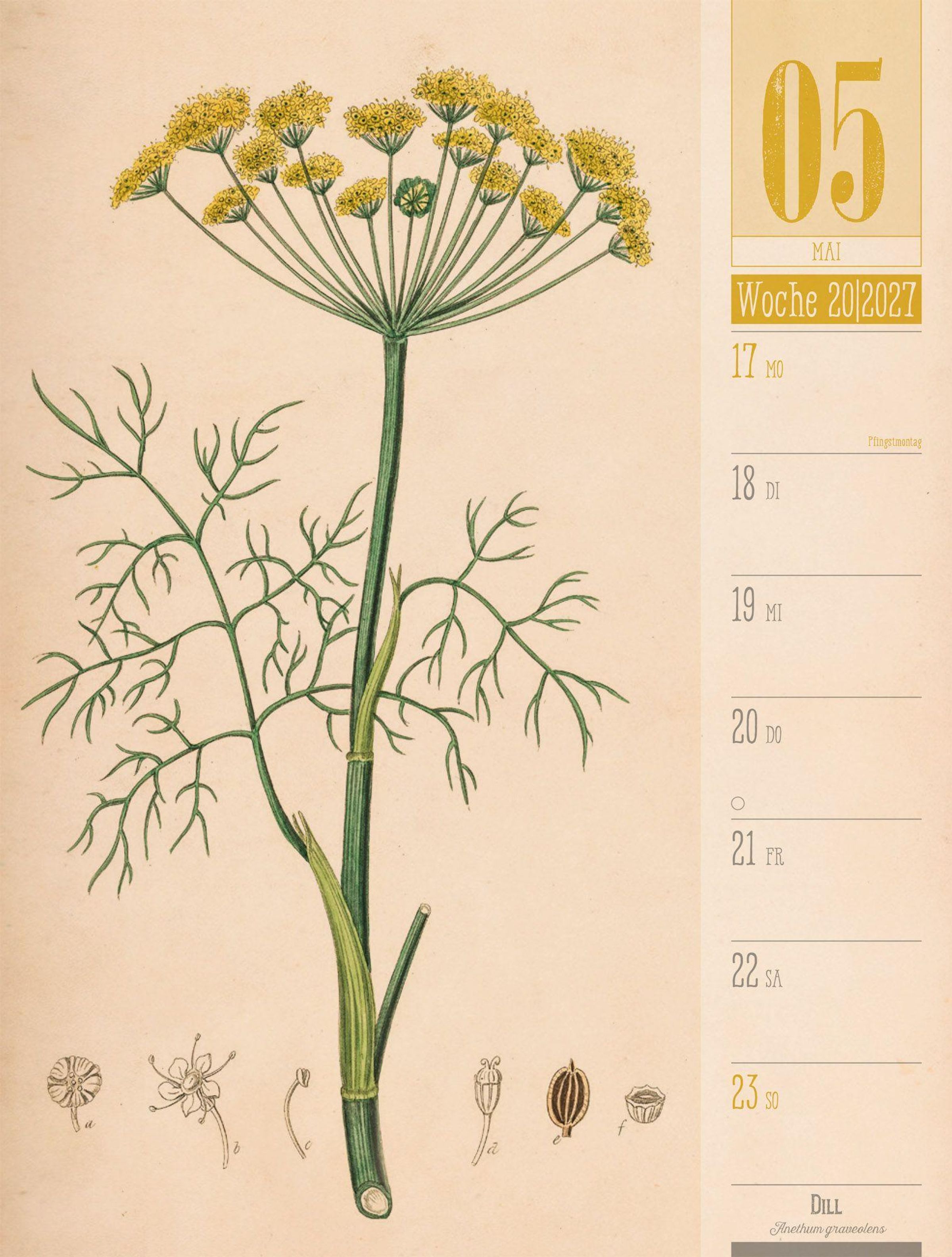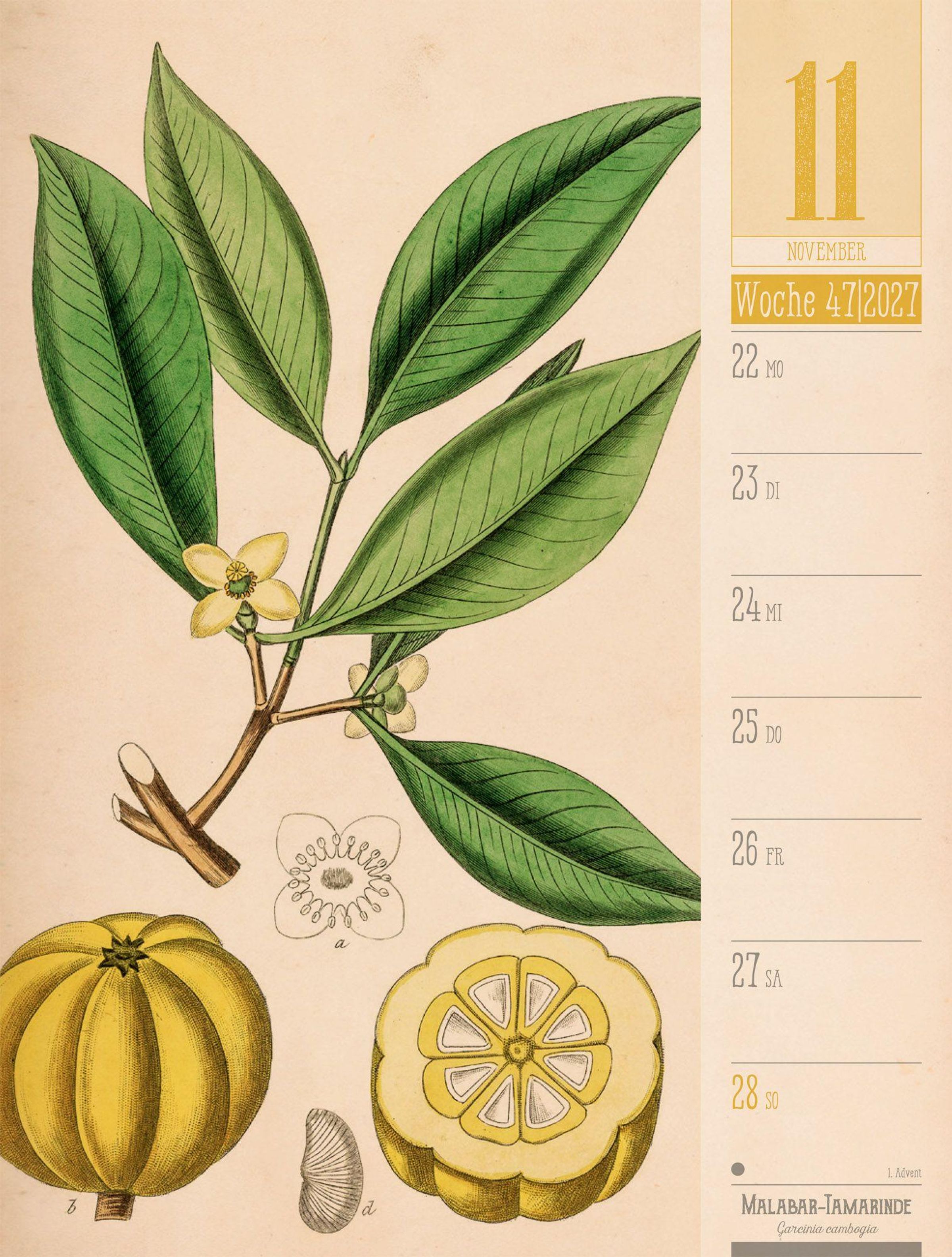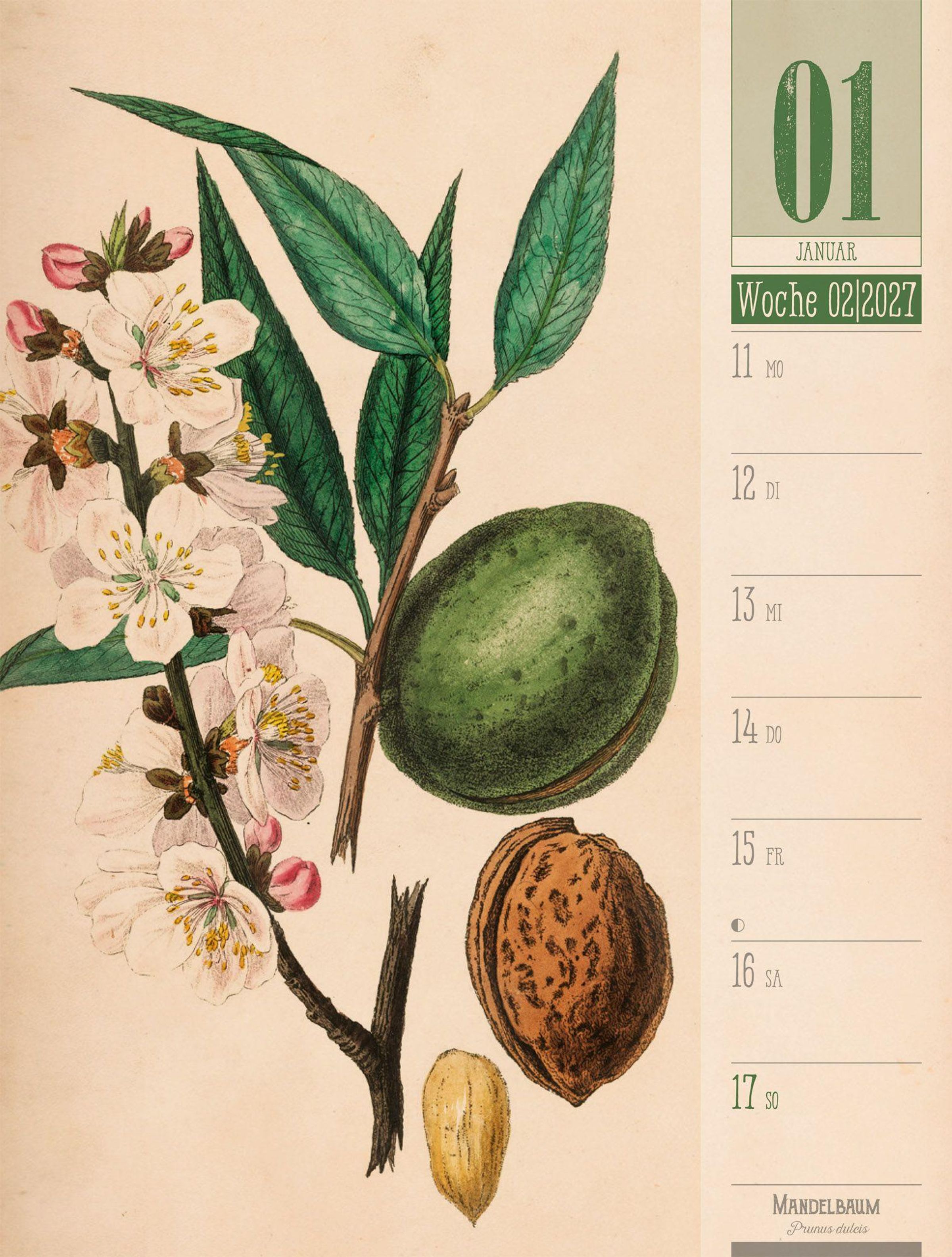 Wochenkalender mit 53 nostalgischen Illustrationen von Pflanzen, Kräutern und Früchten im Vintage-Look
