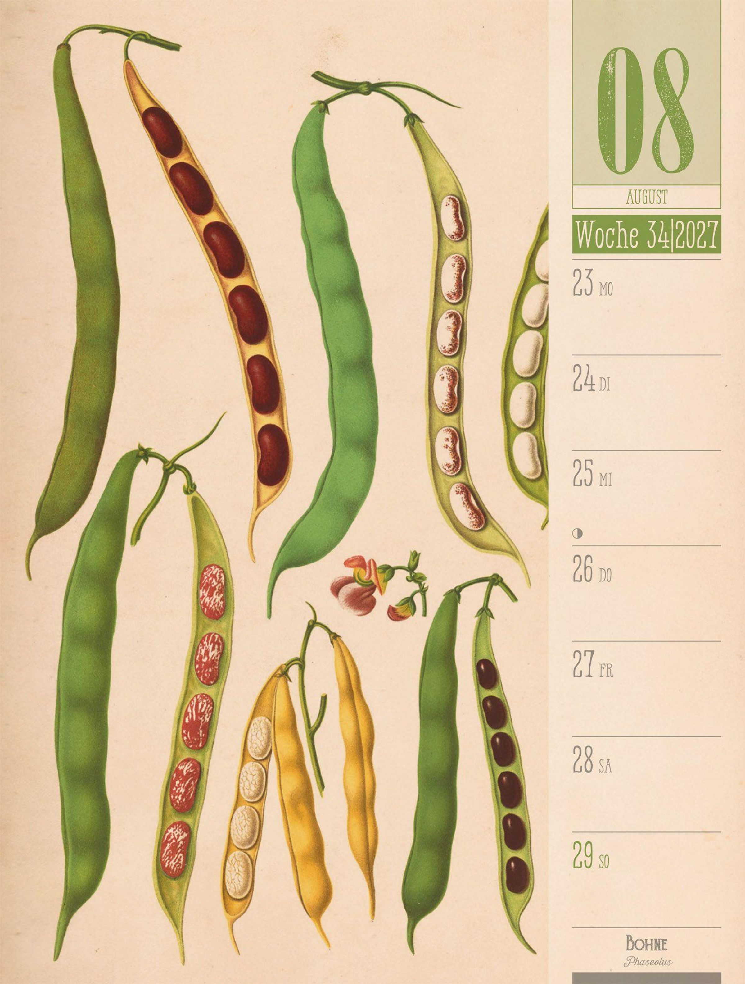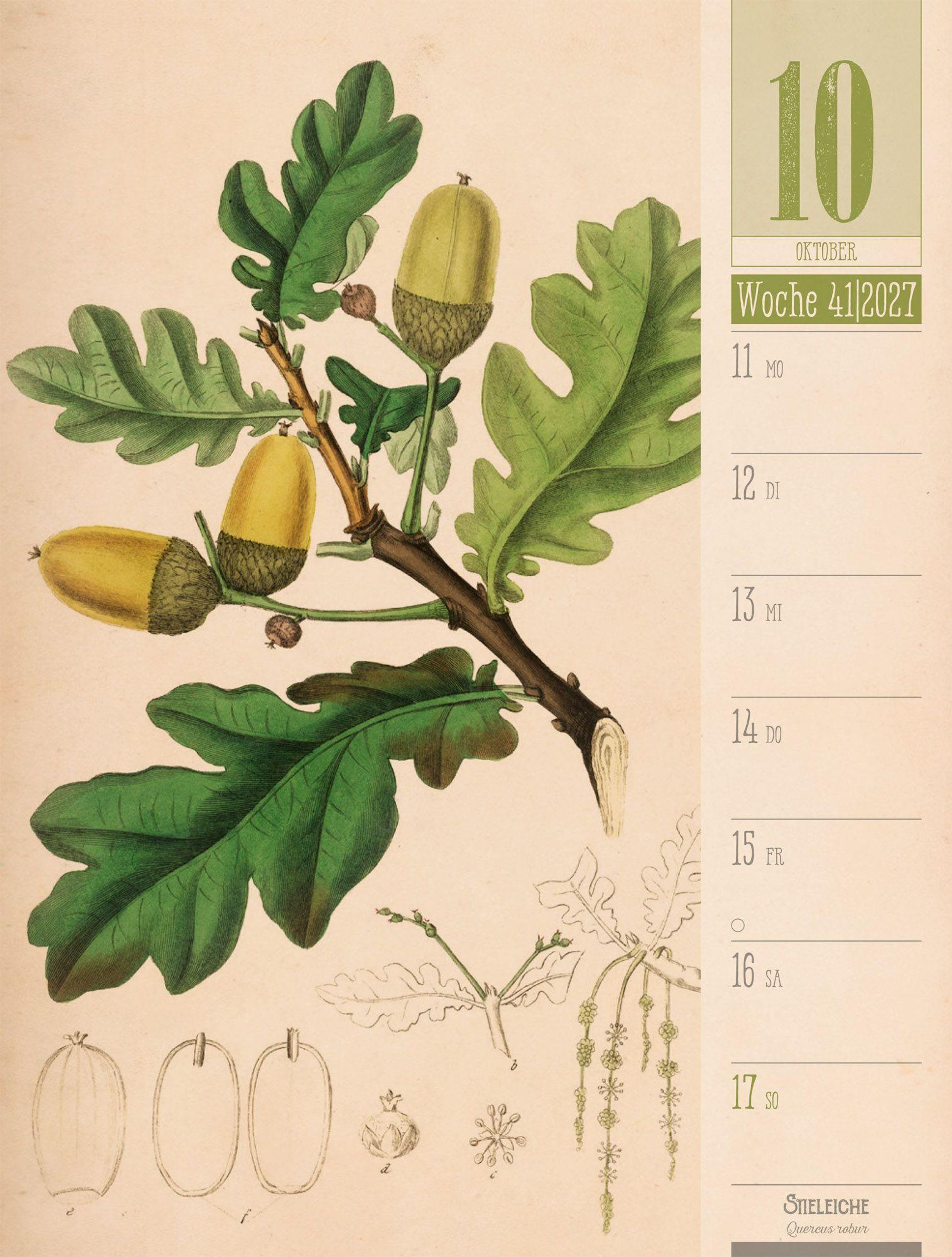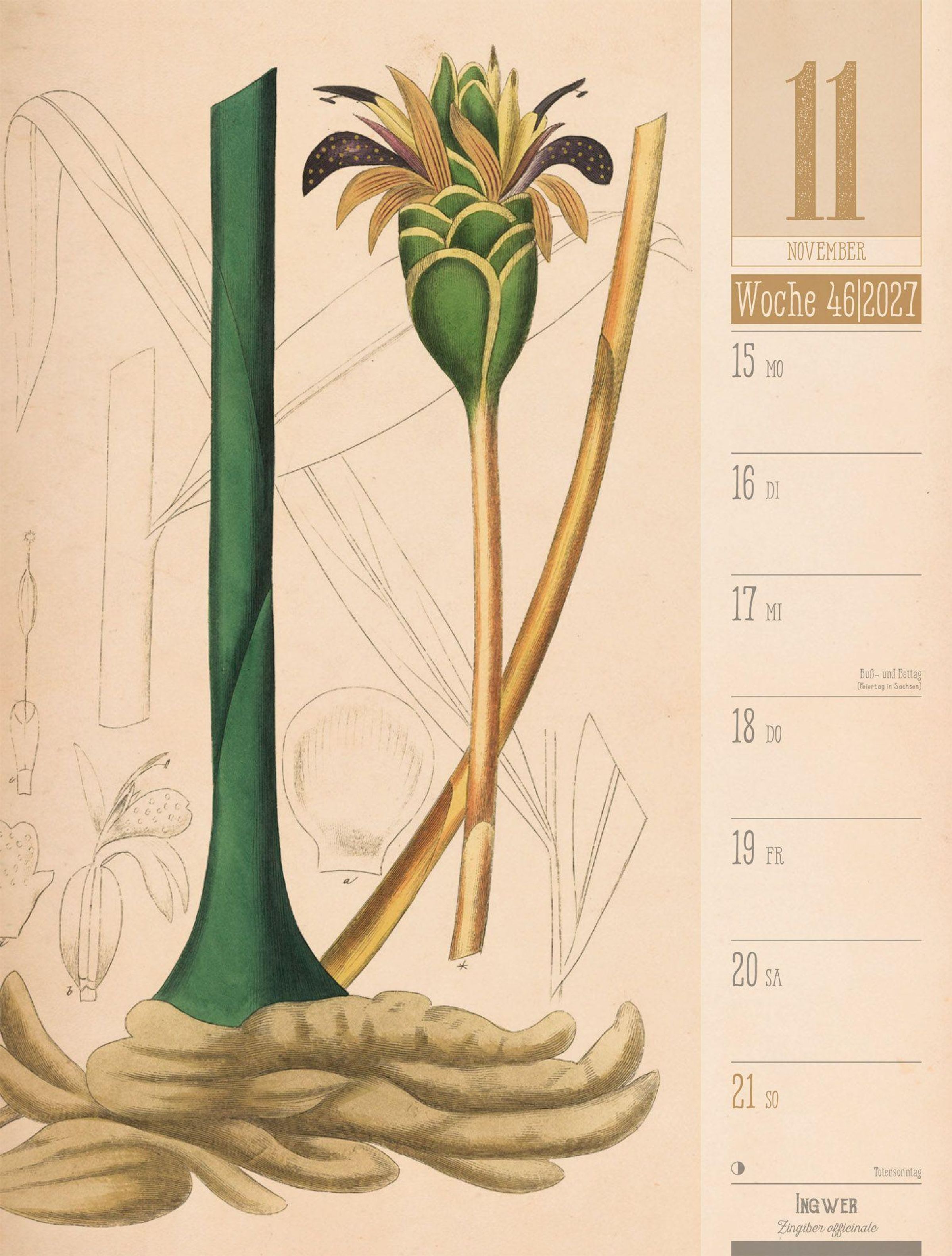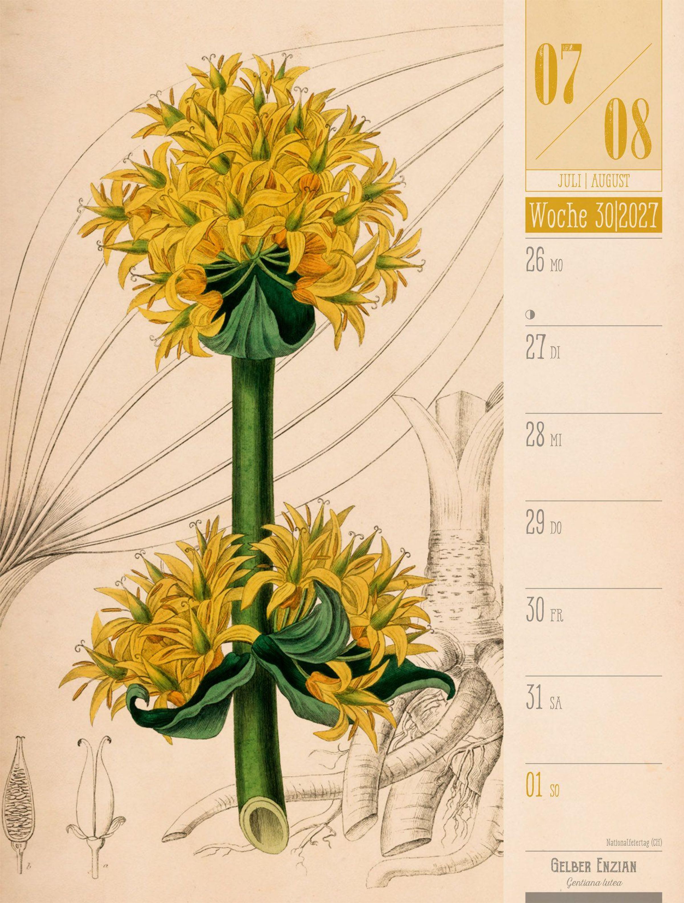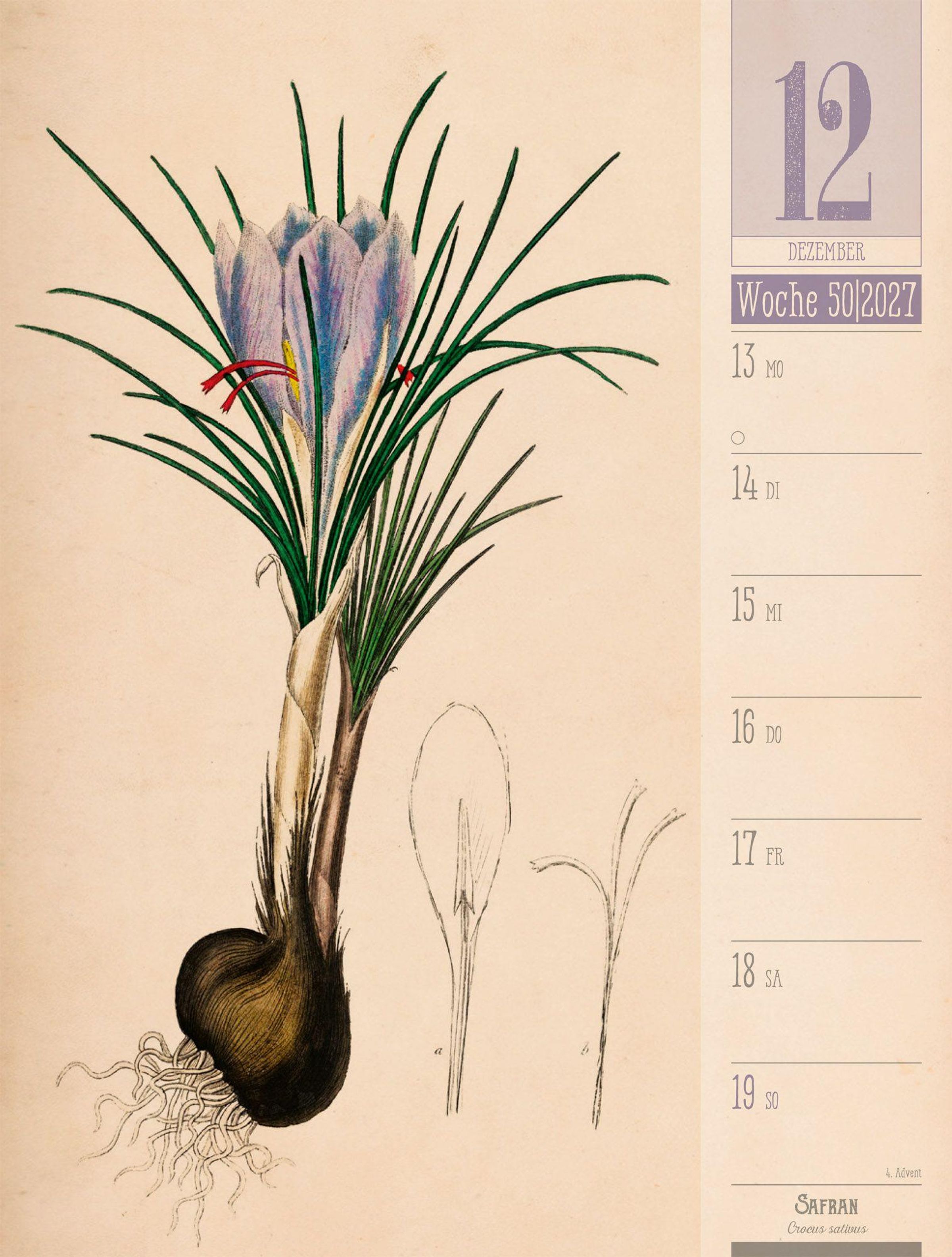 Wochenkalender mit 53 nostalgischen Illustrationen von Pflanzen, Kräutern und Früchten im Vintage-Look