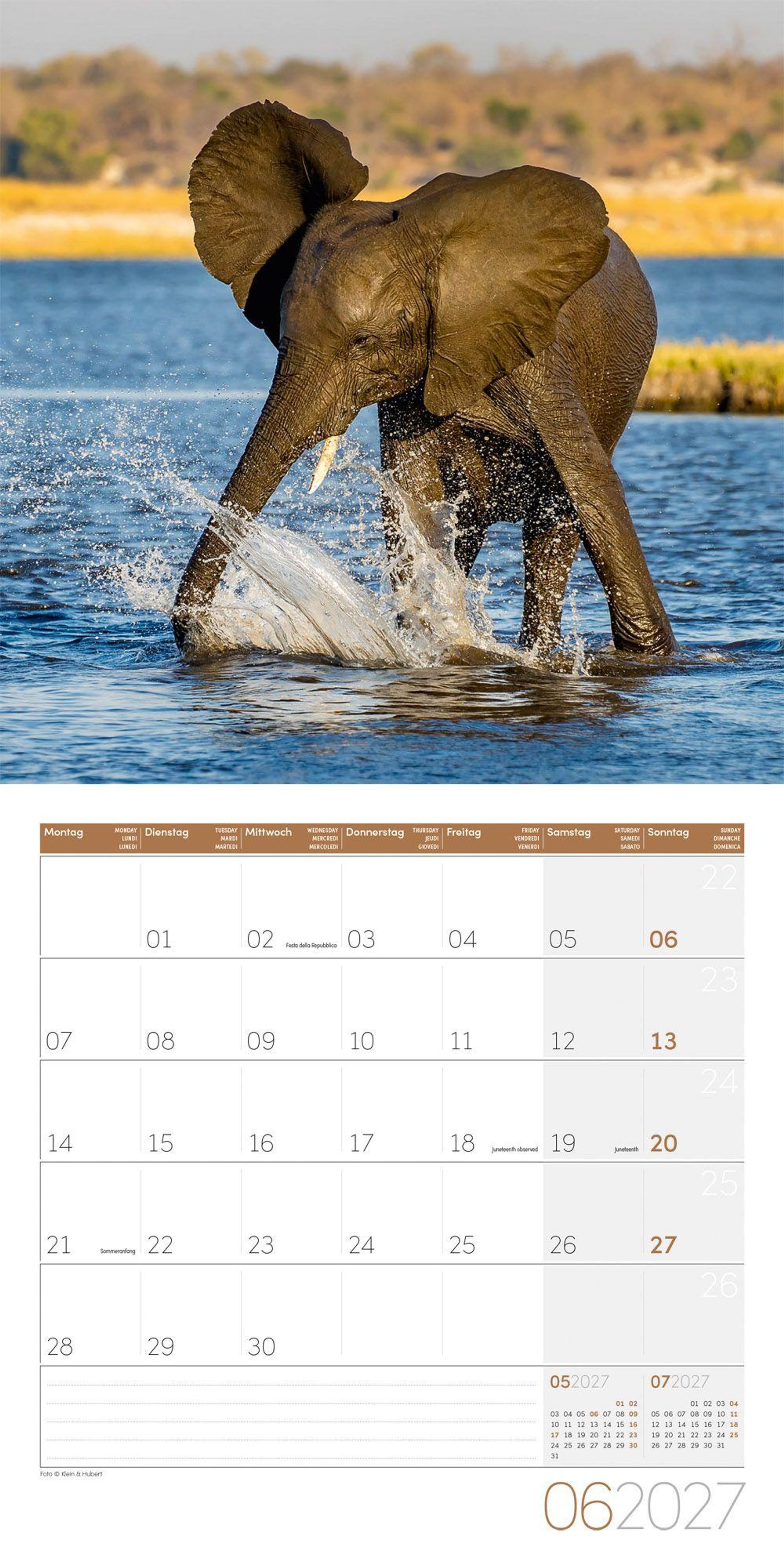 Bis zu vier Meter können Elefanten groß werden und mit bis zu 7, 5 Tonnen Gewicht sind sie die schwersten Landsäugetiere der Welt. Dieser Kalender begleitet die sympathischen grauen Riesen auf ihrer Suche nach Futter und Wasser und beobachtet sie dabei, wie sie große Landstriche Afrikas durchstreifen und ein Leben in der Herde führen. Alle Art12-Kalender sind mit einem Jahresplaner ausgestattet.