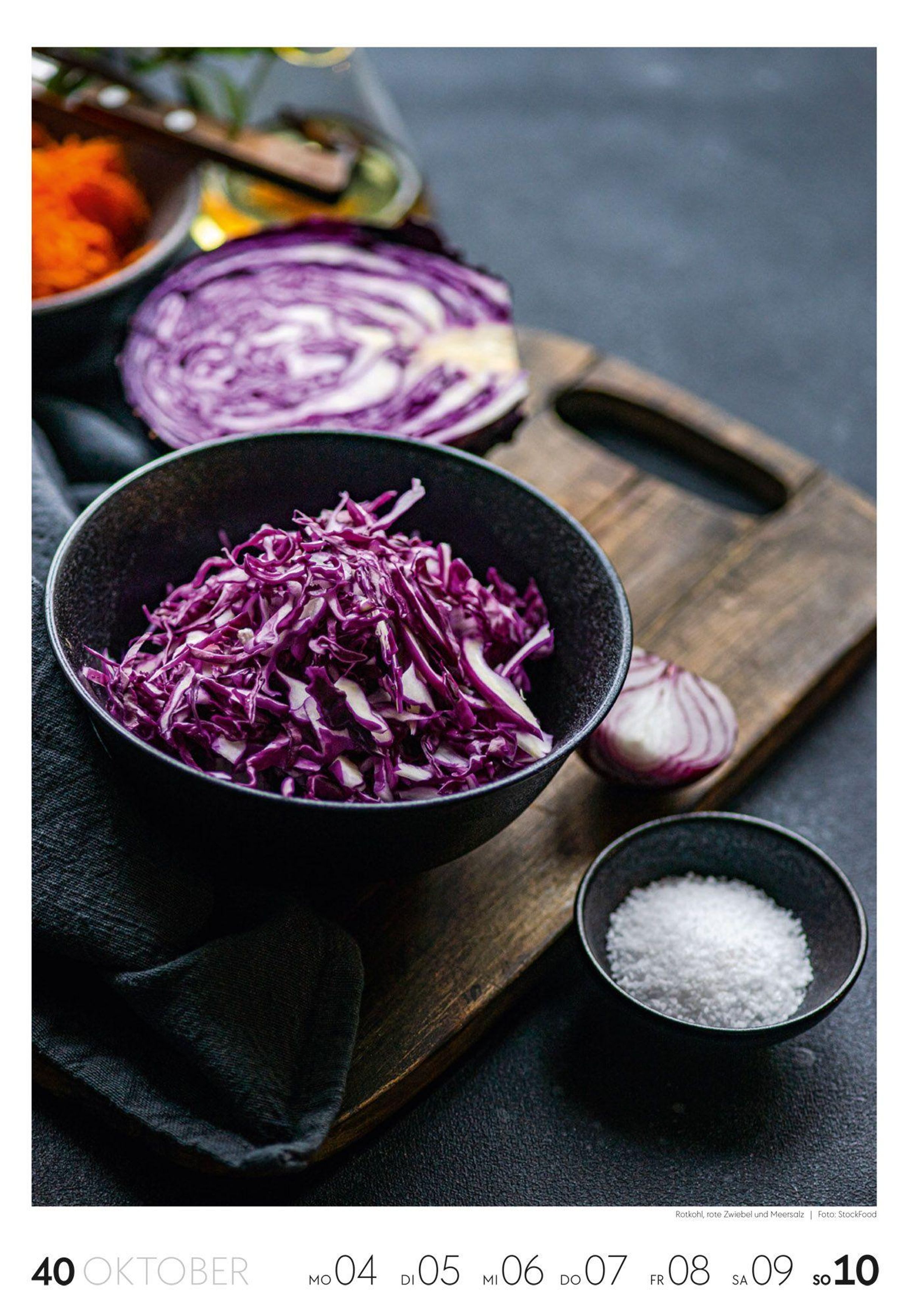 Der perfekte Kalender für echte Foodies: Jede Woche präsentiert unser Wochenkalender ein kunstvoll gestaltetes Bild, das den Genuss und die Vielfalt des Essens zelebriert. Die Ästhetik dieser appetitlichen Stillleben lässt einem das Wasser im Mund zusammenlaufen. Erleben Sie wunderschön arrangierte Köstlichkeiten im Wandel der Jahreszeiten. Ein Kalender für Gourmets, der jede Woche aufs Neue die Geschichte von der Liebe zum Kochen und Genießen erzählt.