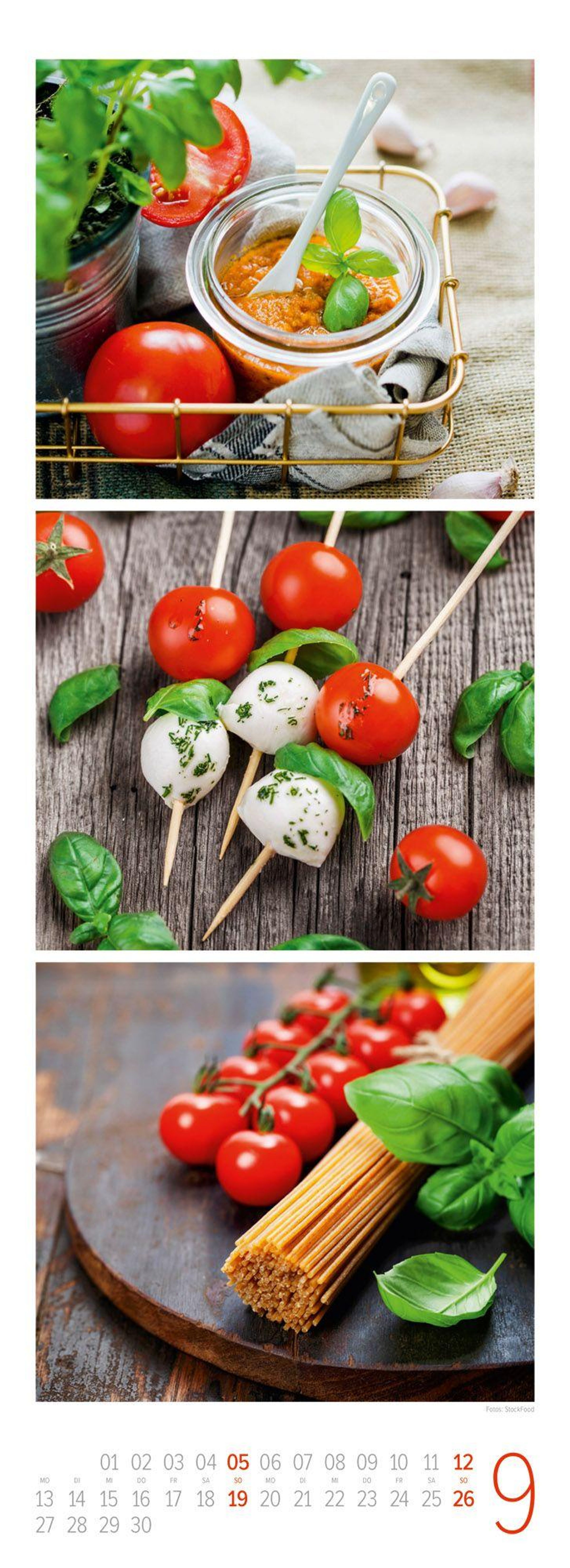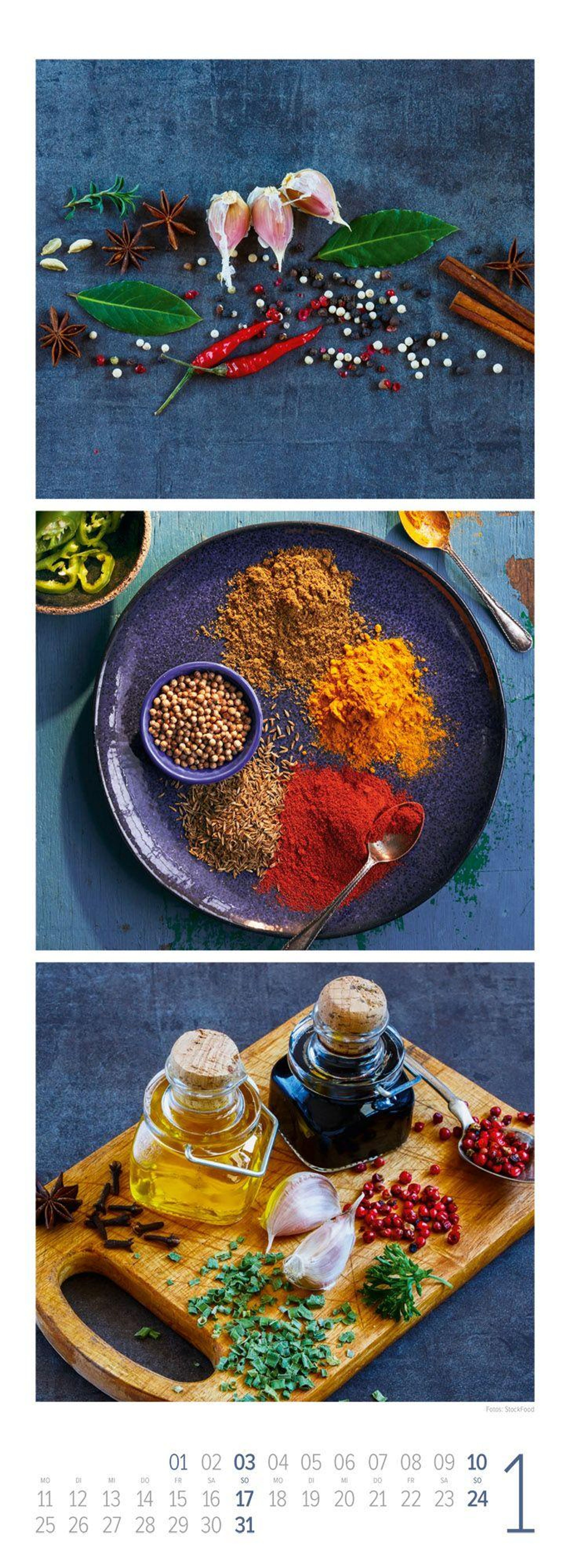 Farben und Aromen gehen Hand in Hand. Wer leuchtend rote Tomaten oder frisches grünes Frühlingsgemüse ansieht, weiß sofort auch, wie sie schmecken. Mit diesem Triplet-Kalender läuten wir die Genusszeit mit allen Sinnen ein und nehmen Sie mit auf eine farbenfrohe und geschmacksintensive Reise durch die Welt von Obst, Gemüse und Gewürzen. Jedes Kalenderblatt zeigt gleich dreimal, wie geschmackvoll kulinarische Genüsse inszeniert werden können. Eine aromatische Augenweide der Extraklasse für Ihre Küche!