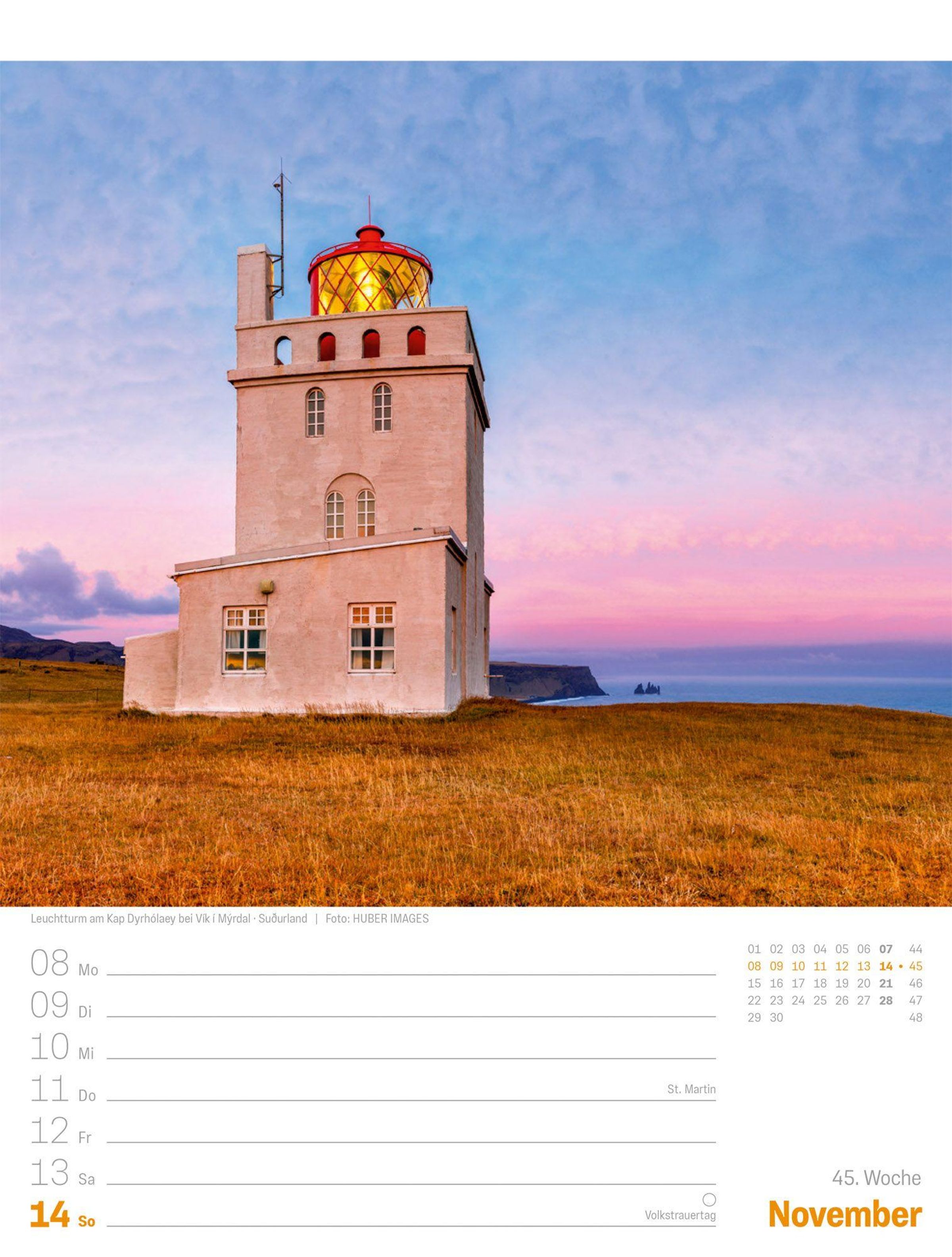 Sagenhaft und bildgewaltig: Island, das Land aus Feuer und Eis, ist mit seiner kontrastreichen Landschaft ein Sehnsuchtsort für alle, die von den Kräften der Natur fasziniert sind. Mit 53 beeindruckenden Reisefotos nehmen wir Sie mit auf die größte Vulkaninsel der Erde, zeigen Ihnen einen spannenden Mix aus heißen Quellen, endloser Weite und spektakulären geologischen Formationen. Übersichtliches Kalendarium mit Platz für Ihre Einträge und dazu jede Woche neuer Rätselspaß: Kreuzworträtsel und Sudokus auf allen Rückseiten.
